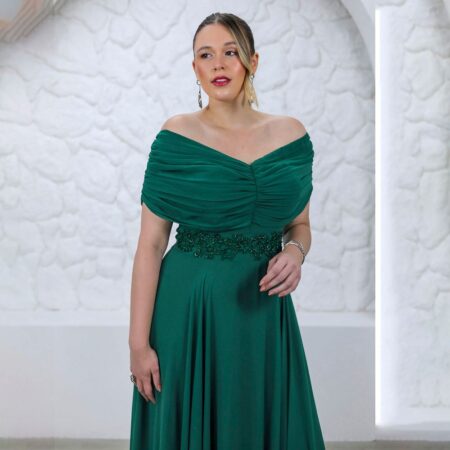 Vestido Denisy Chiffon Ombro A Ombro com Saia Rodada – Musgo