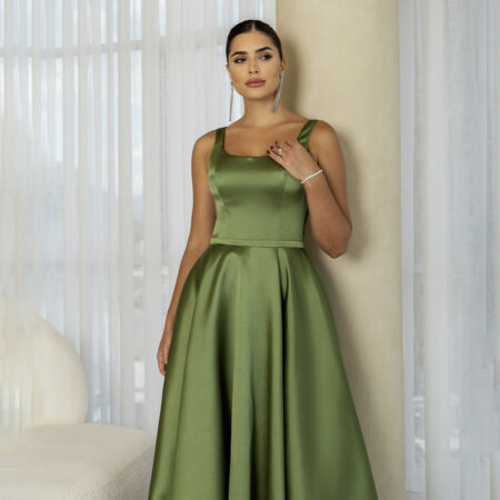 Vestido Millie Cetim Amanda Regata e Saia Rodada – Verde