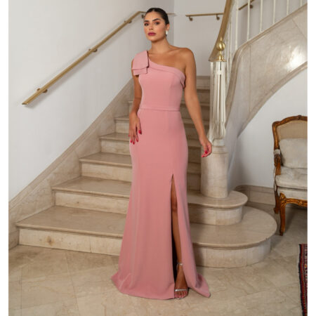 Vestido Anastasia Alfaiataria Um Ombro Detalhe Laço e Saia Fenda – Rose