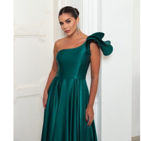 Vestido Earyn Um Ombro Cetim, Detalhe Ombro Saia Rodada – Musgo