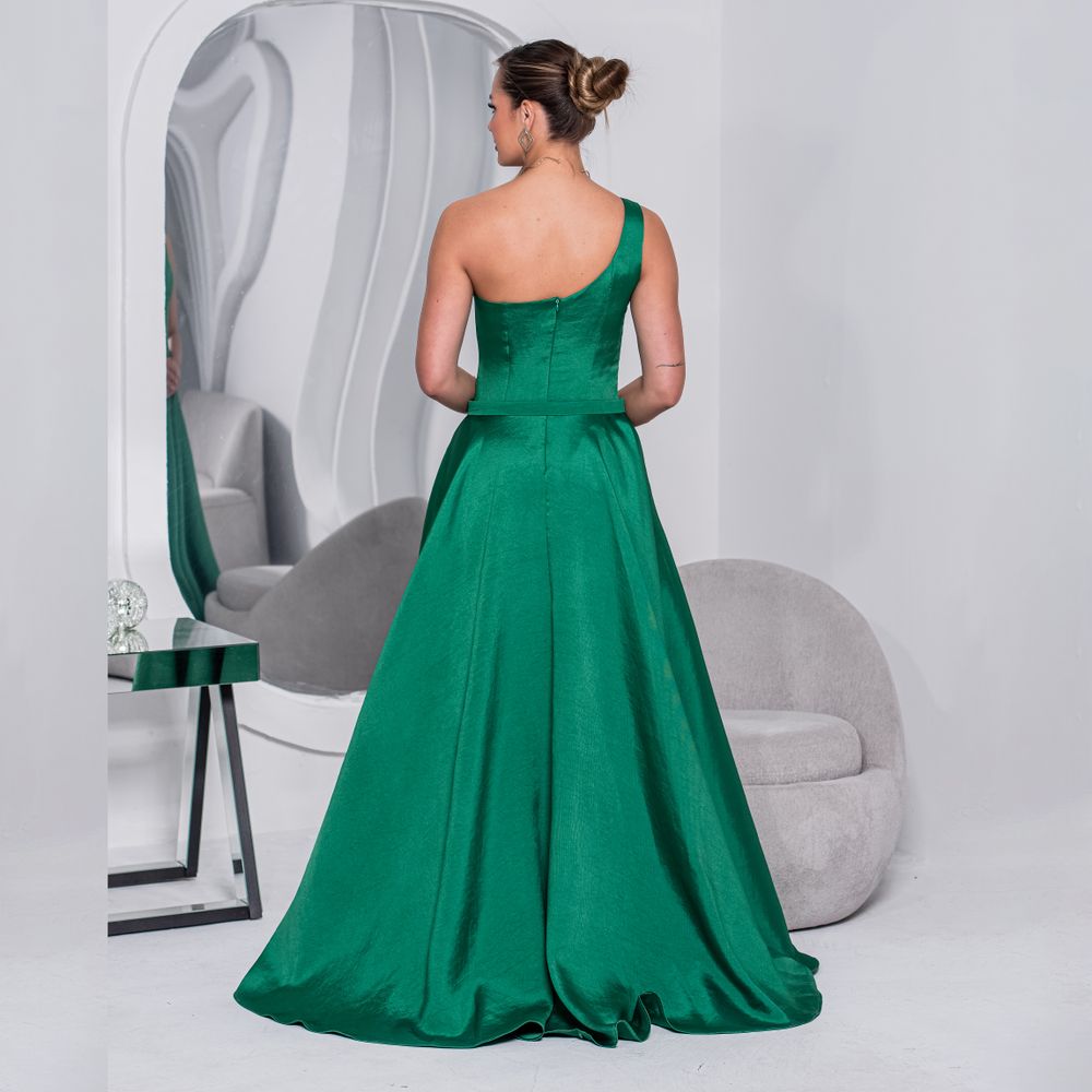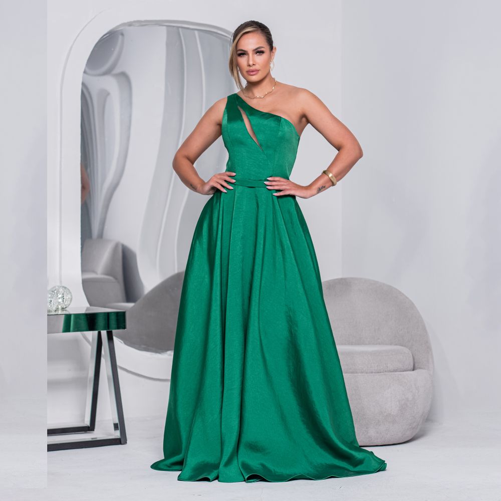 Vestido Alette Zibeline Um Ombro e Saia Rodada – Verde