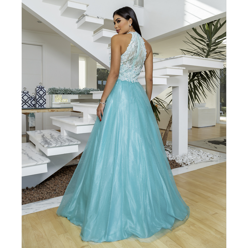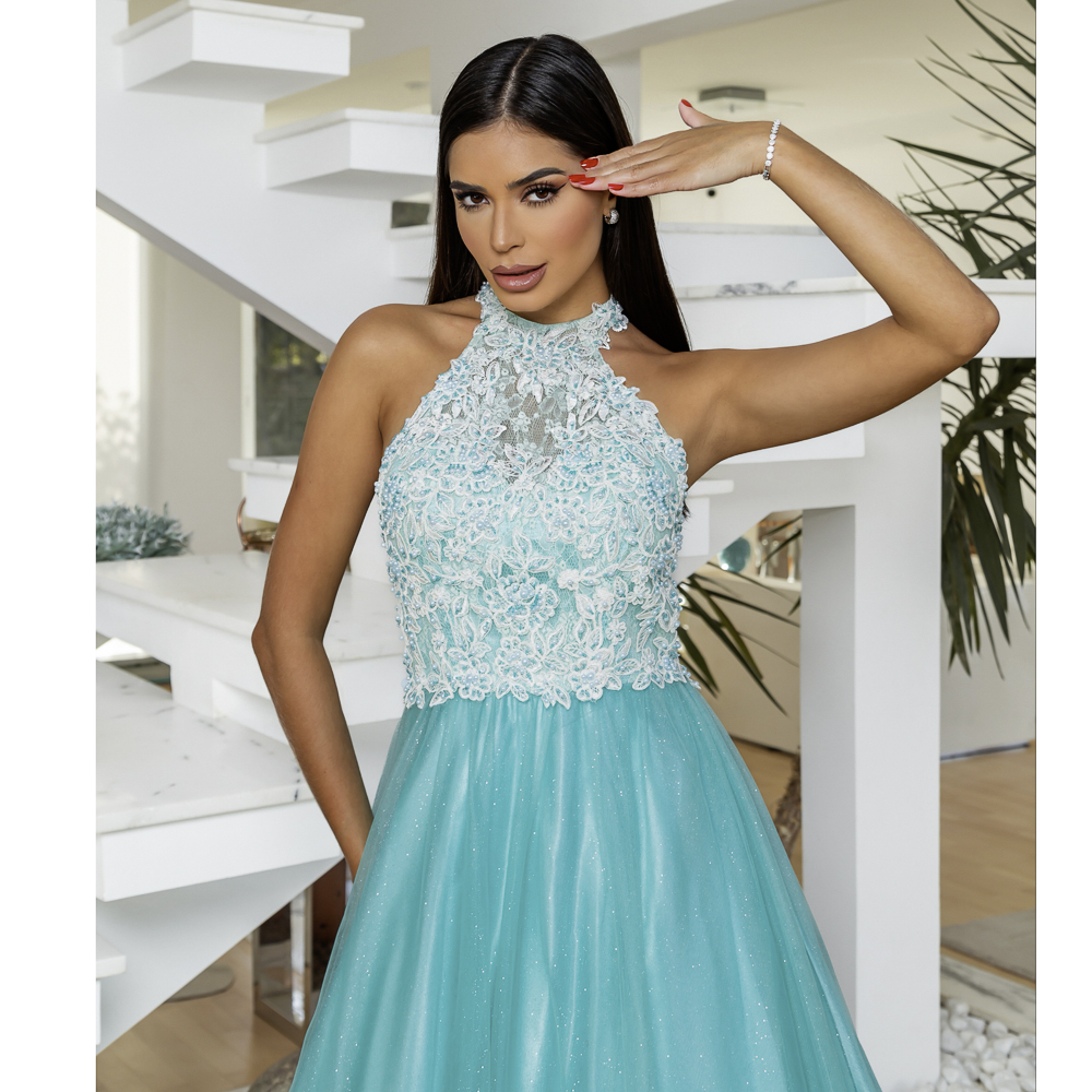 Vestido Alicia Importado Renda Aplicada com Perola, Gola Alt – Tiffany