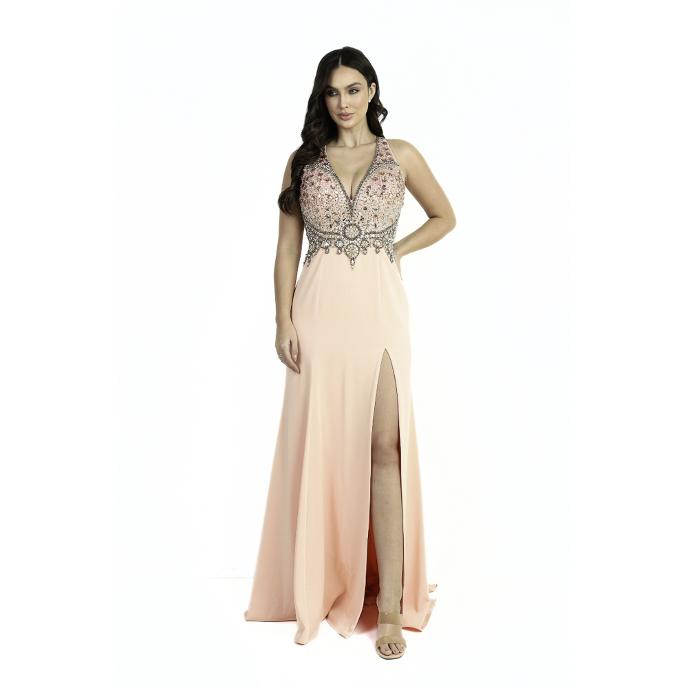 Vestido Allison Importado Busto Bordado e Saia Fenda