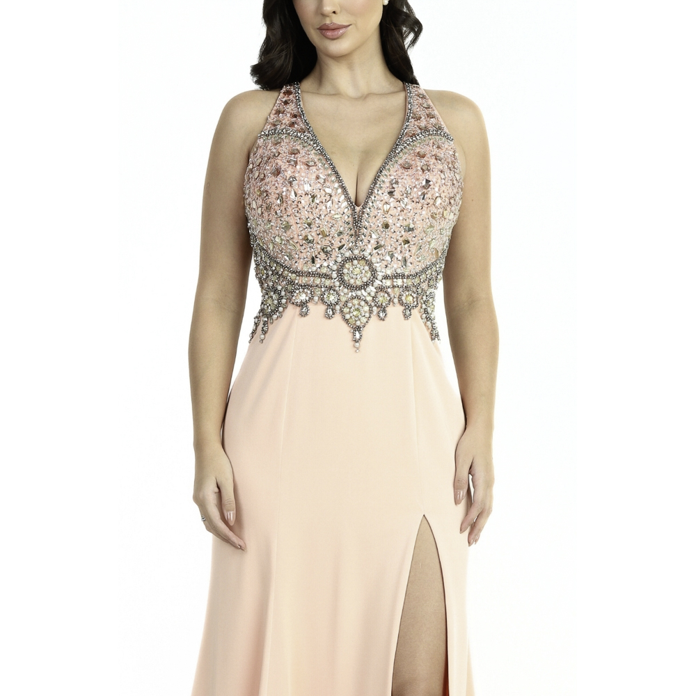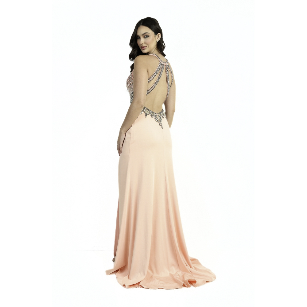 Vestido Amara Importado Busto Regata Bordada e Saia com Fend – Salmao