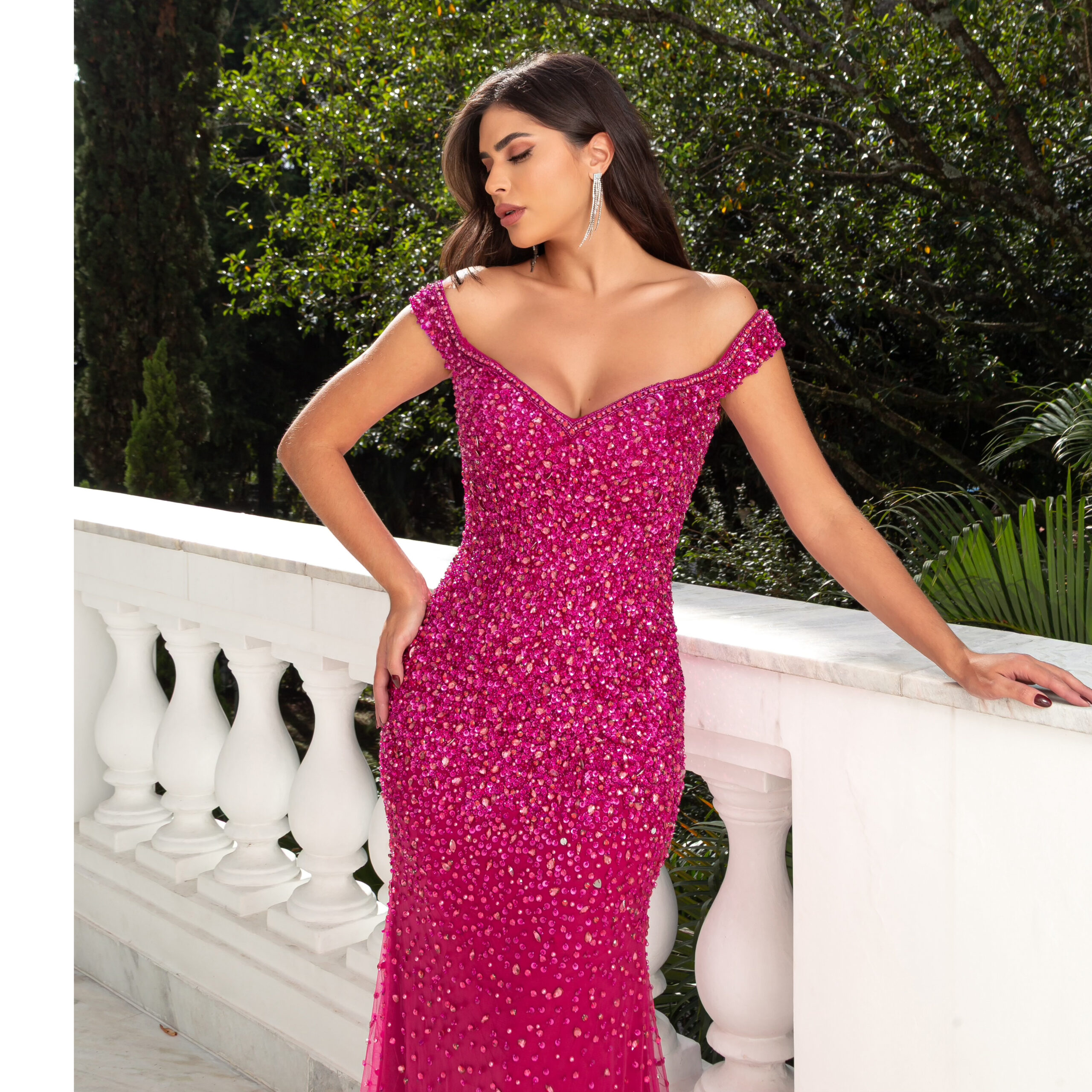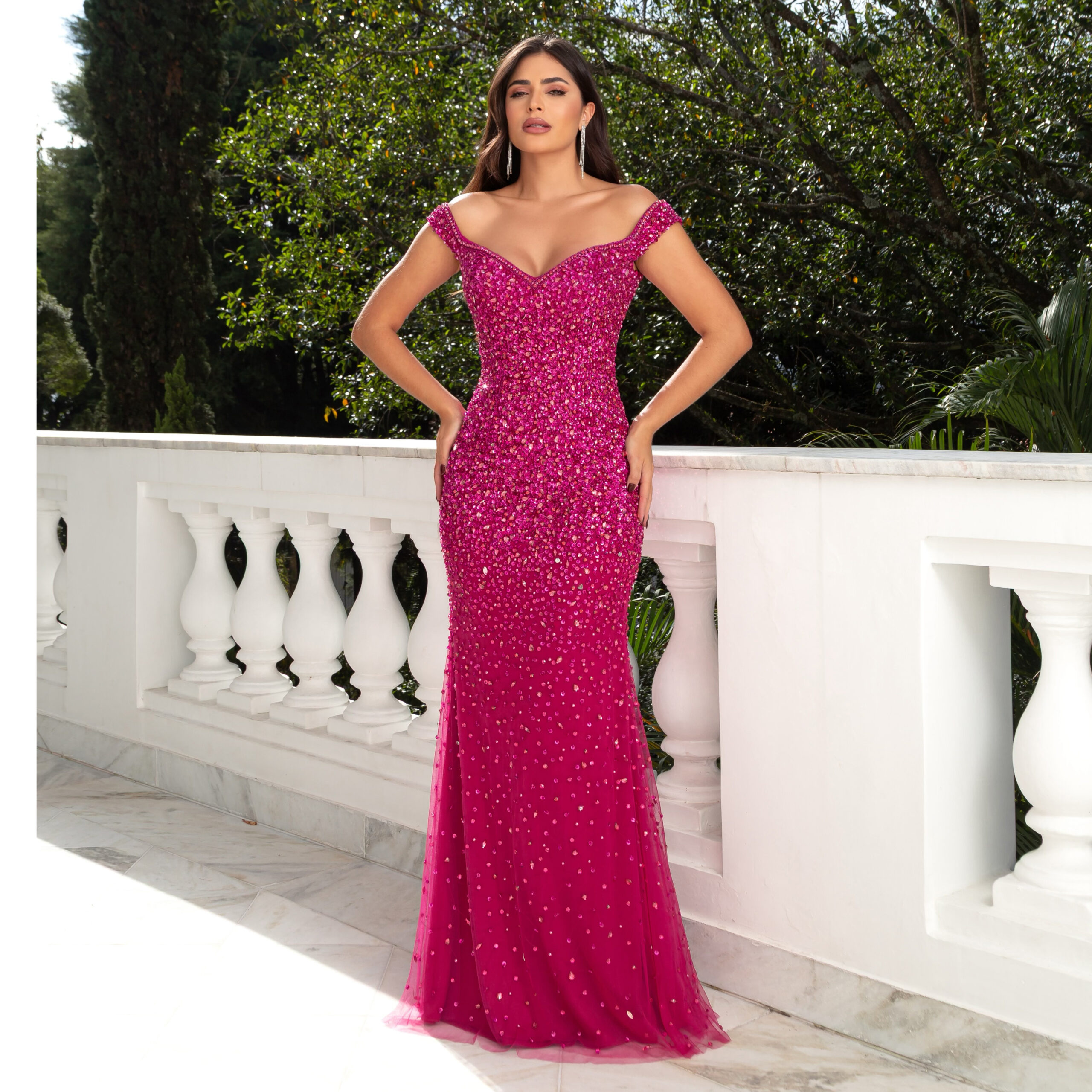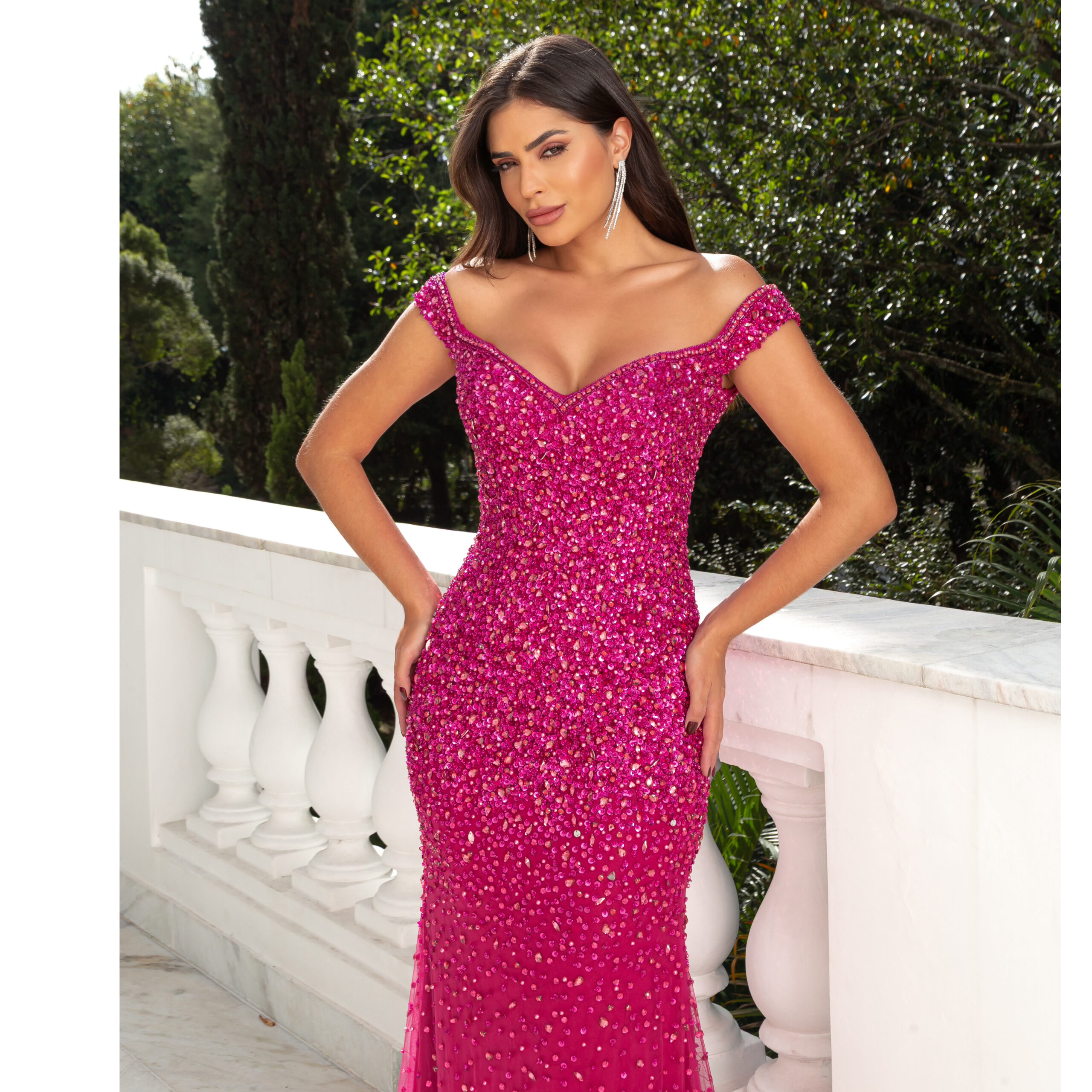 Vestido Ivy Tule Bordado Ombro A Ombro Saia Sereia