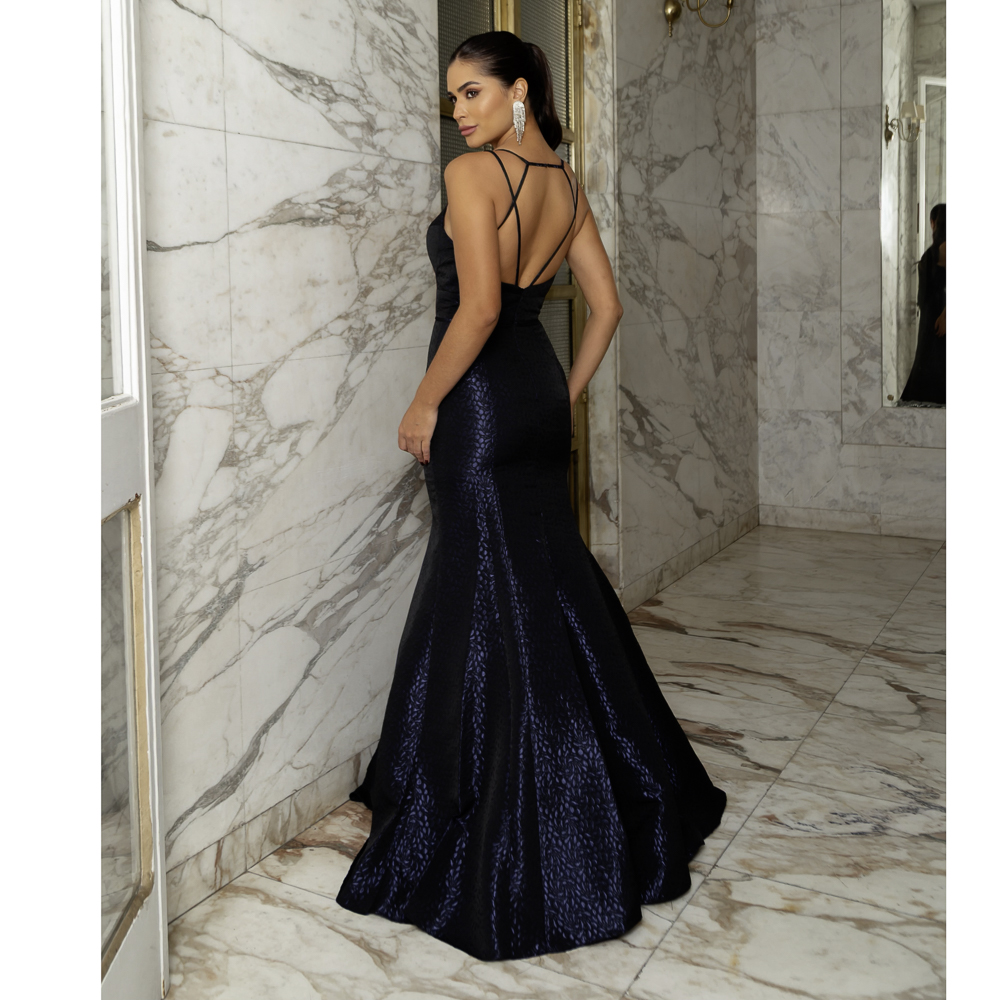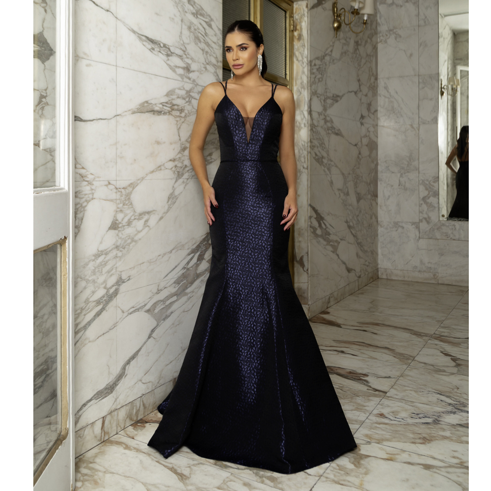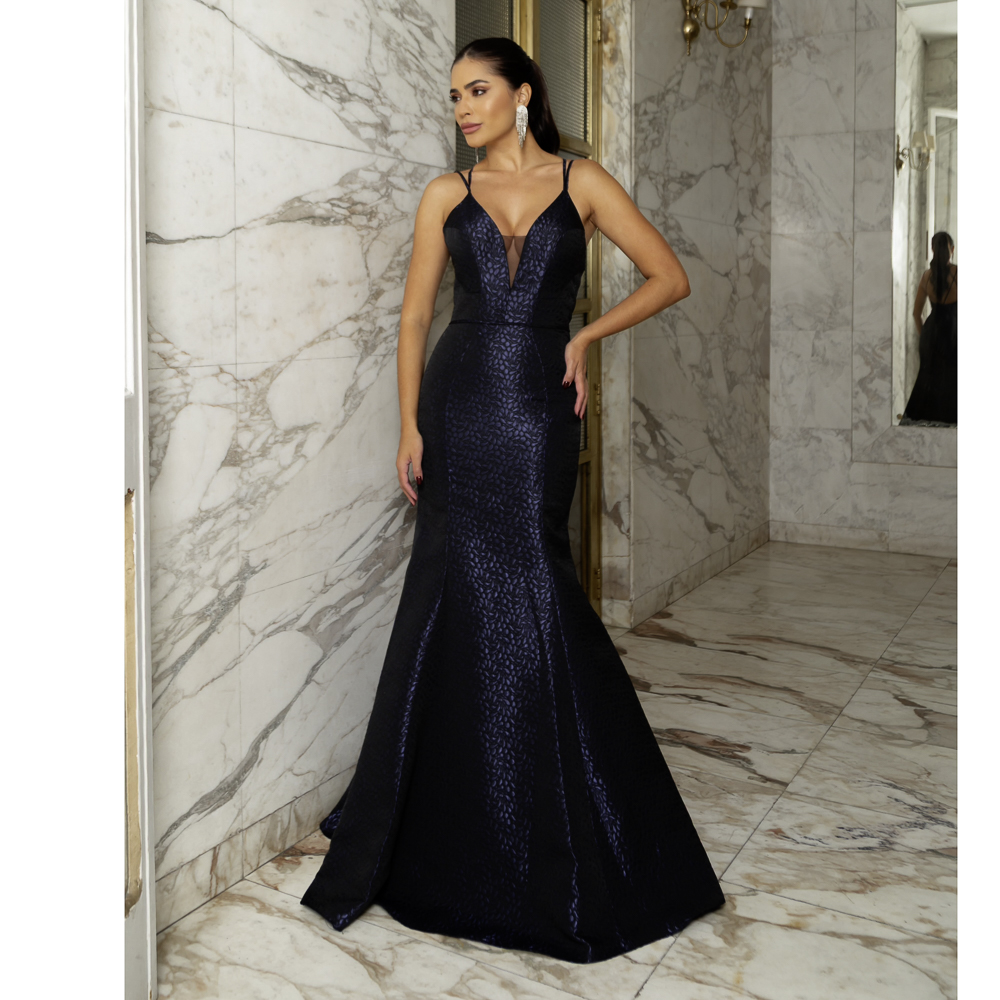 Vestido Andrea Importado jacquard, alça e saia sereia