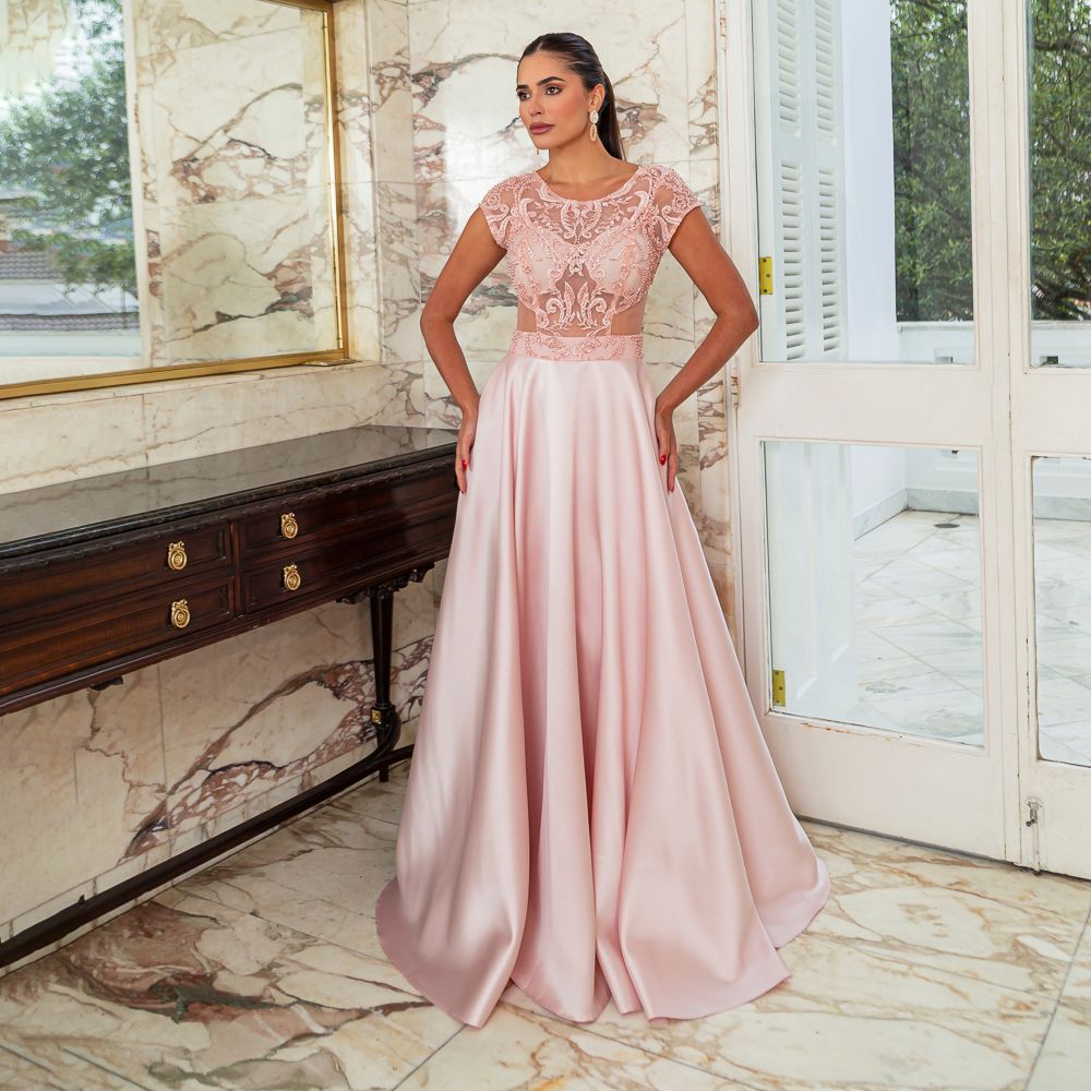 Vestido Kamila Importado Busto Bordado e Saia de Tule Rodada