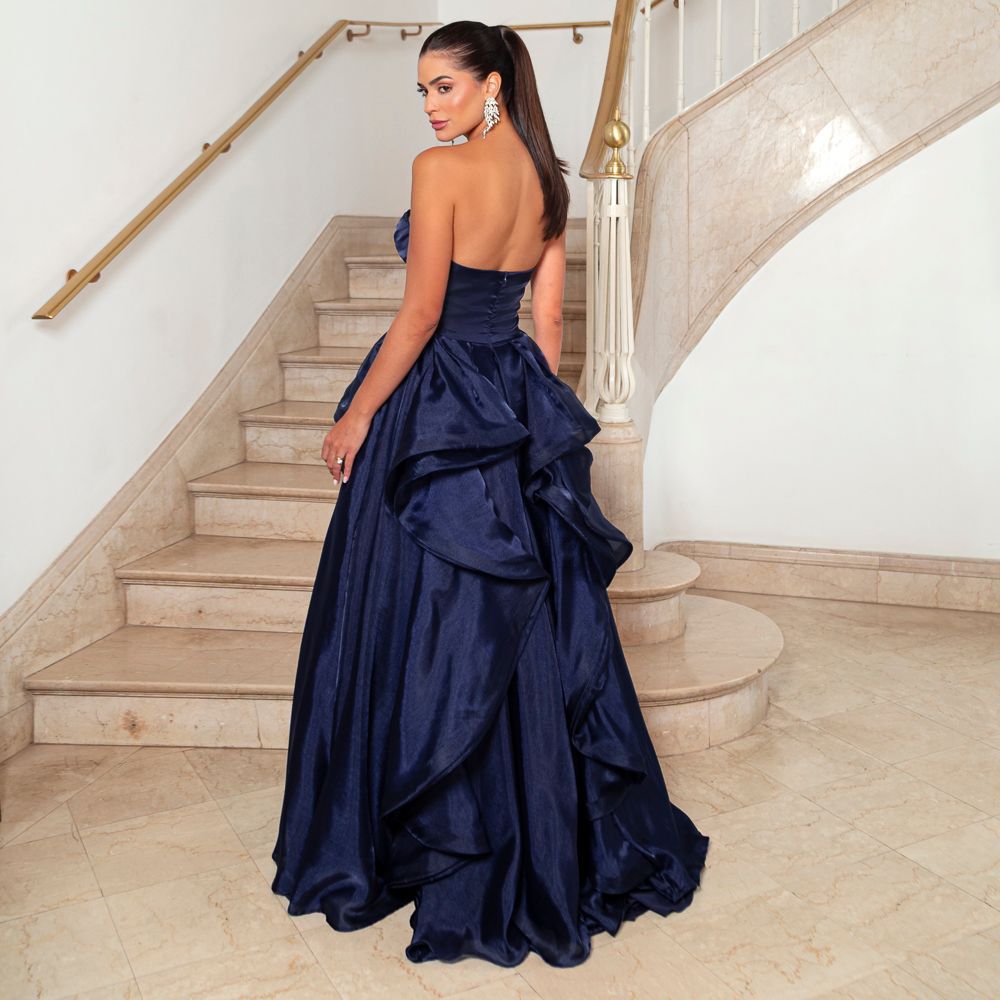Vestido Aylin Organza Tqc e Saia Cascata – Marinho