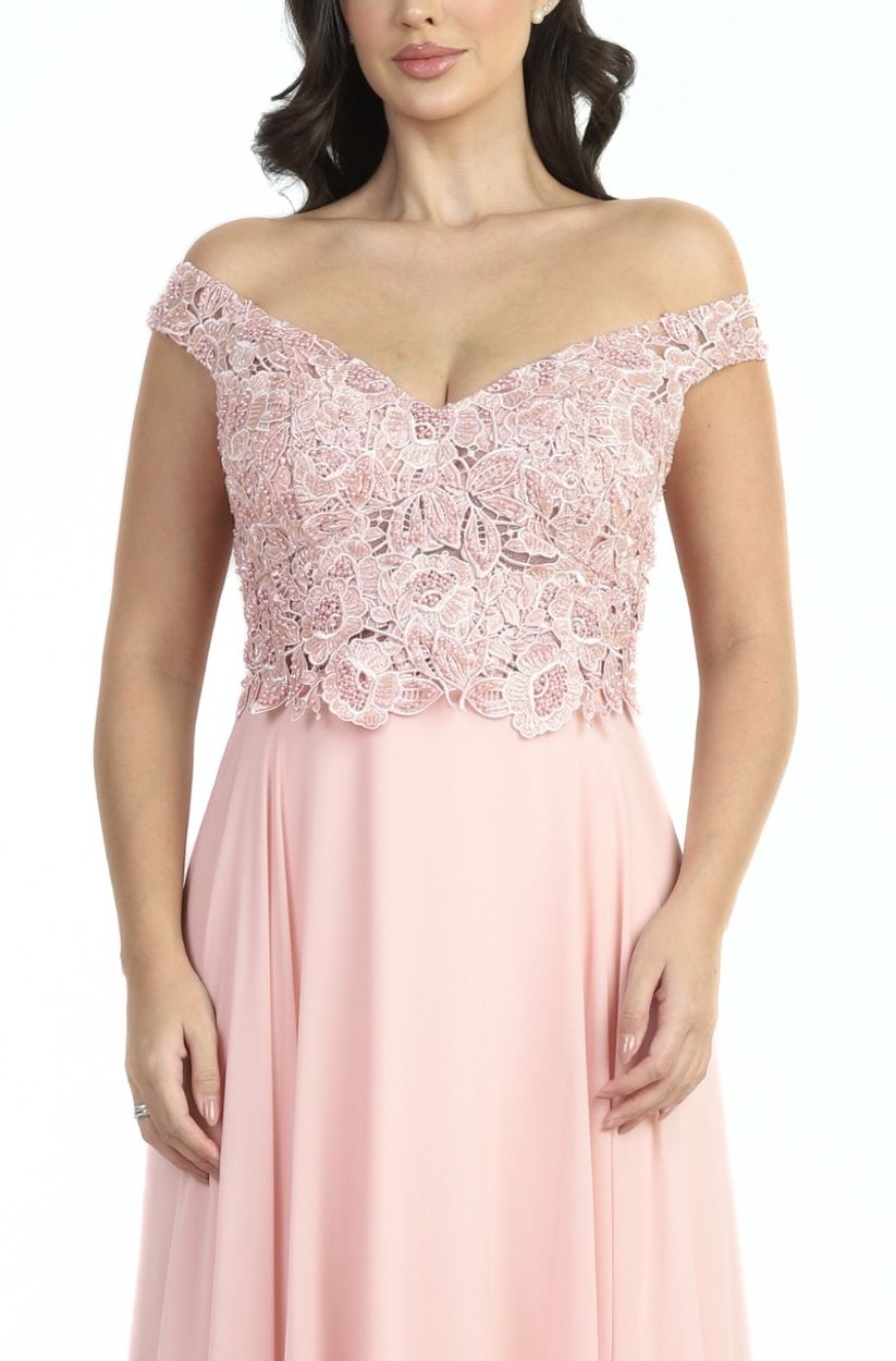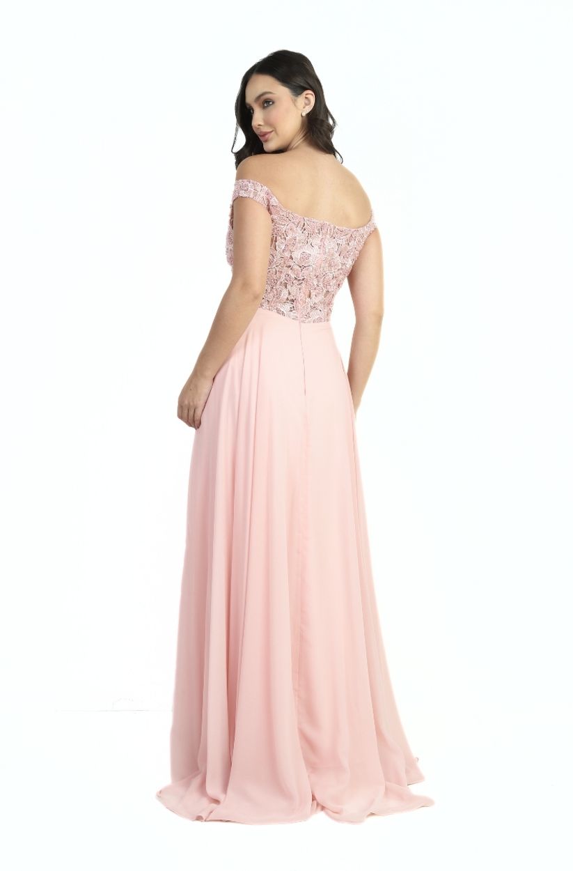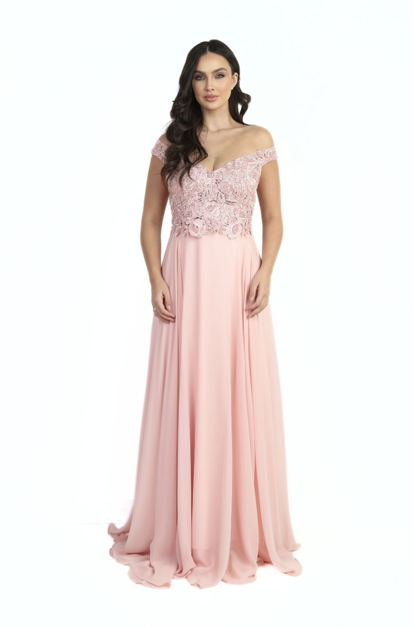 Vestido Beatriz Ombro A Ombro Bordado, Pala com AplicaÇÃo e Saia Chiffon Rodada – Rose