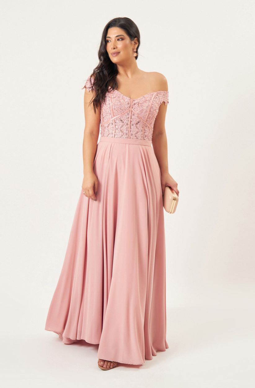 Vestido Brooke Ombro A Ombro Bordado e Saia Rodada – Rose