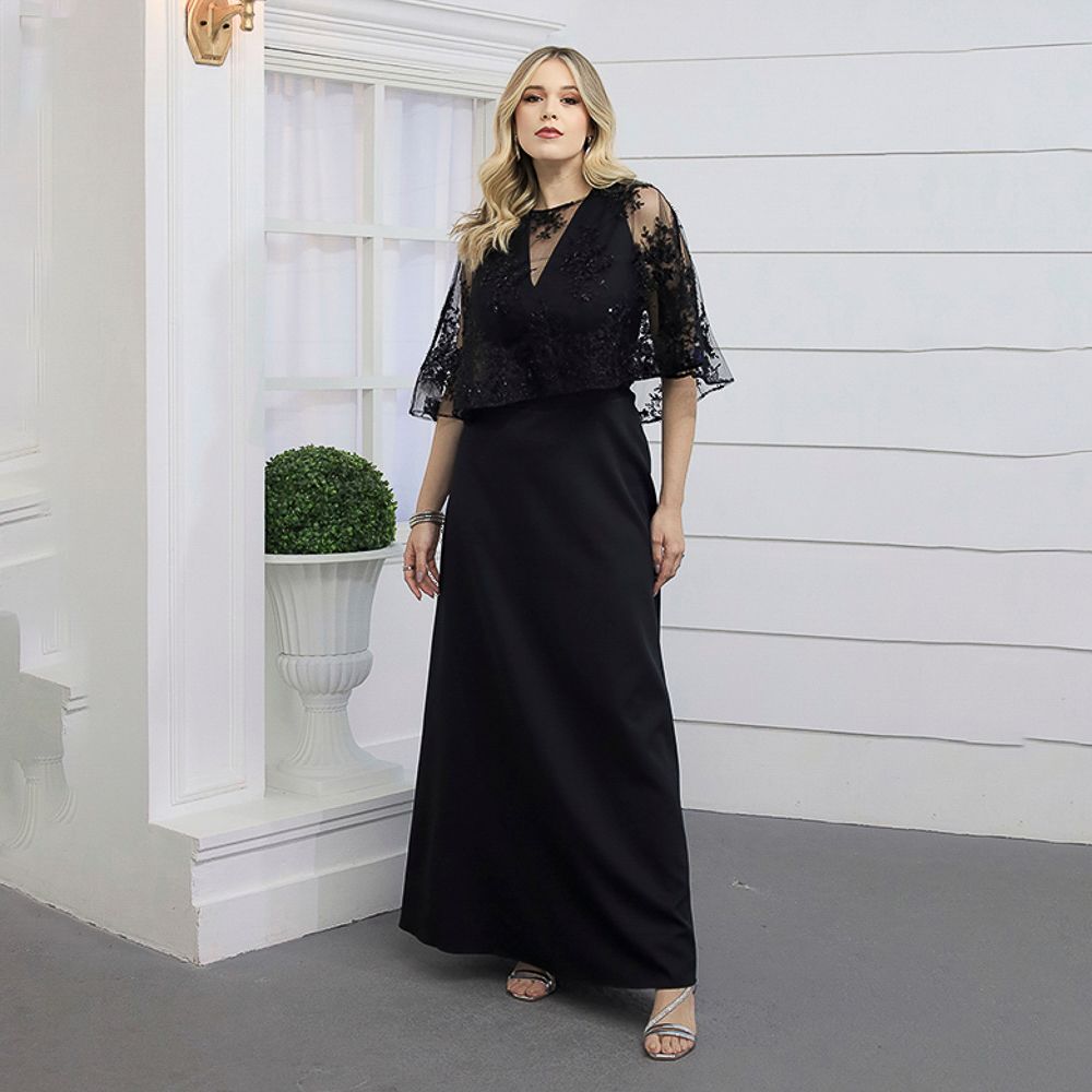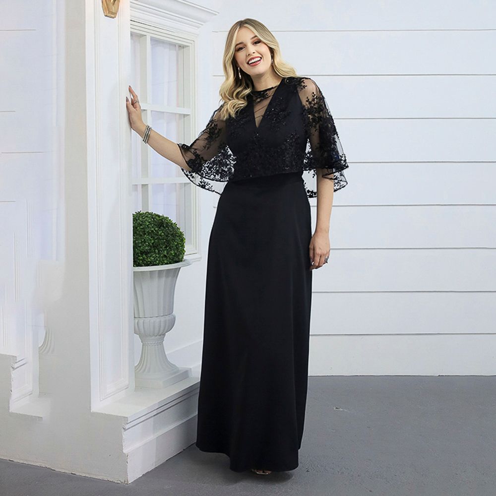 Vestido Capa Tule Bordado Paris Saia Rodada – Preto