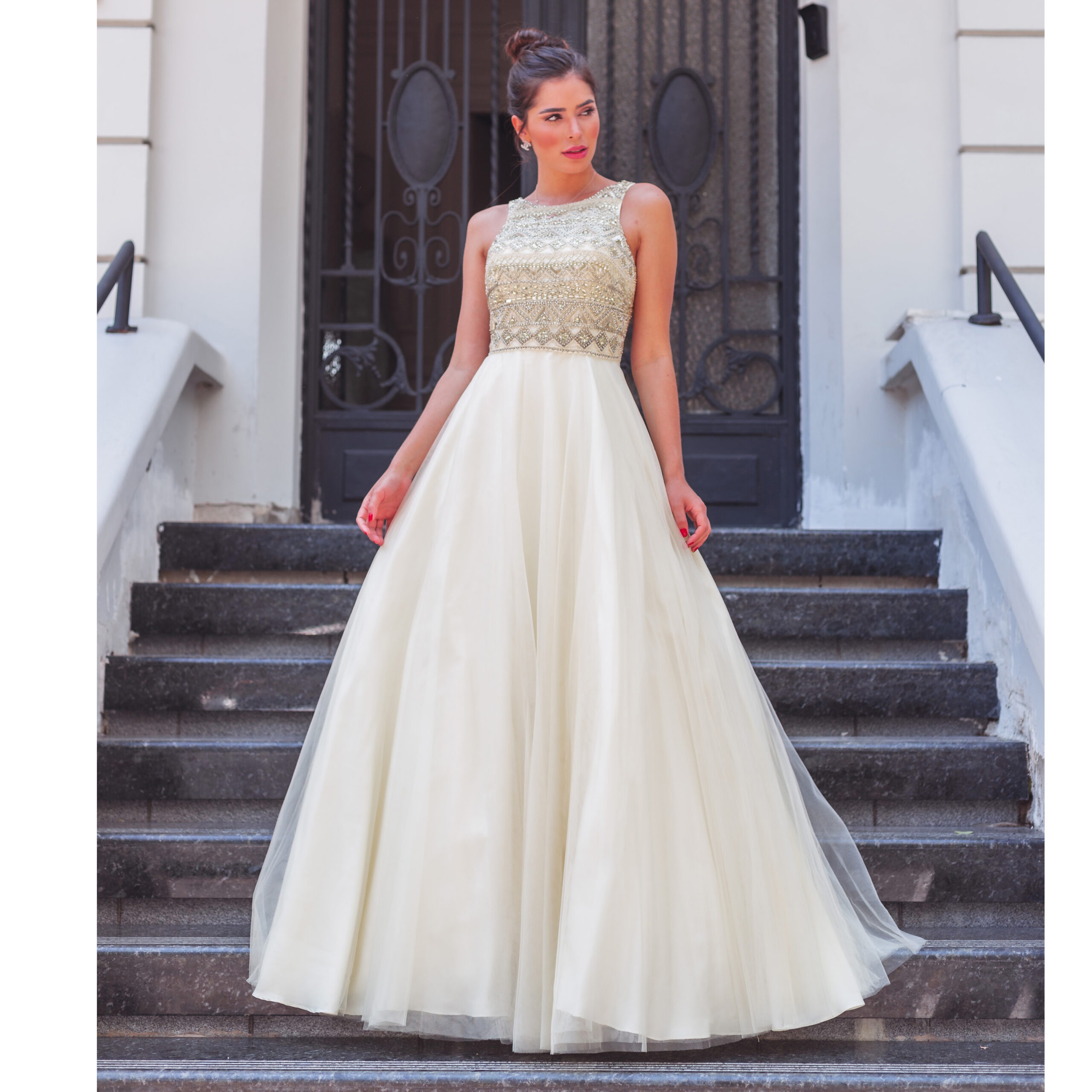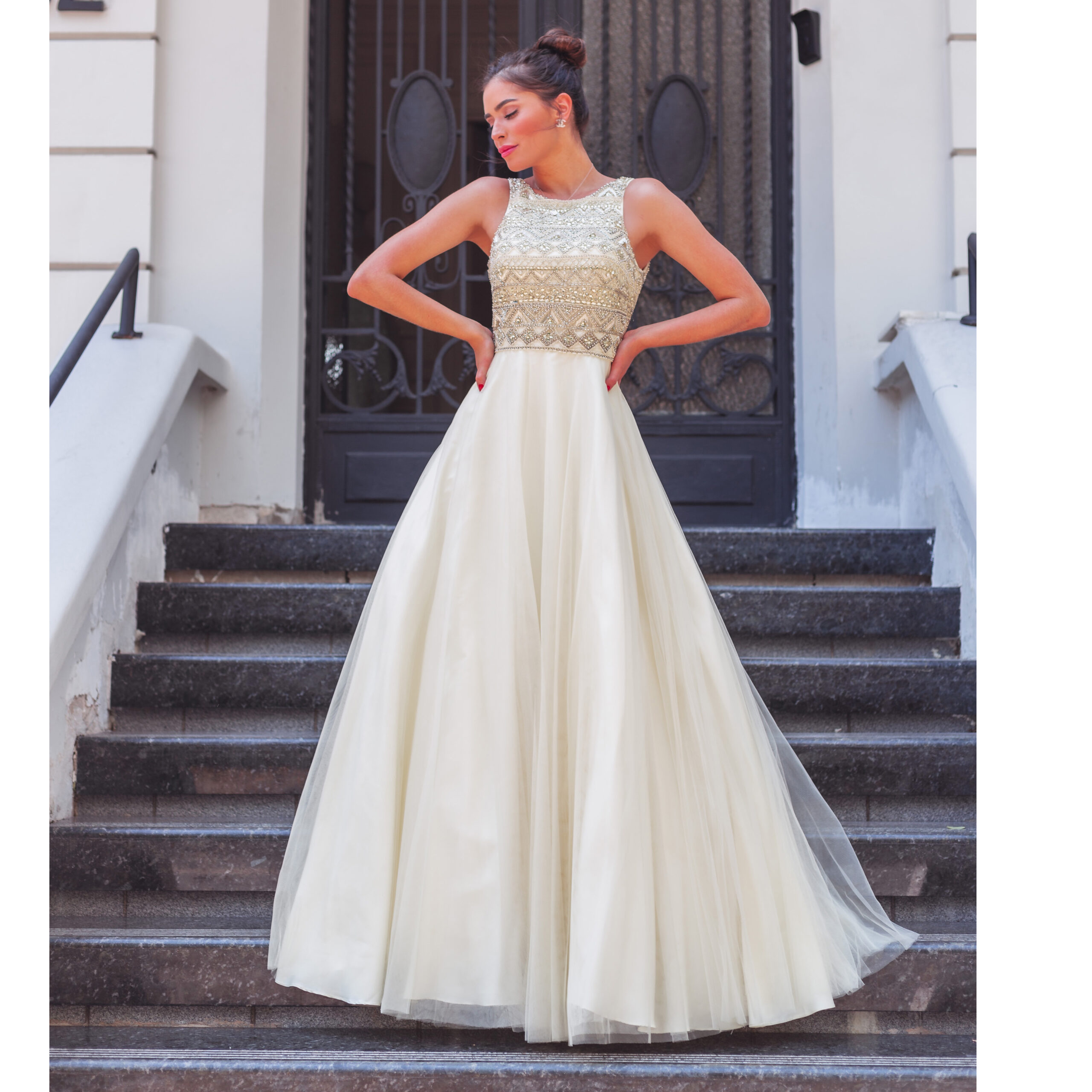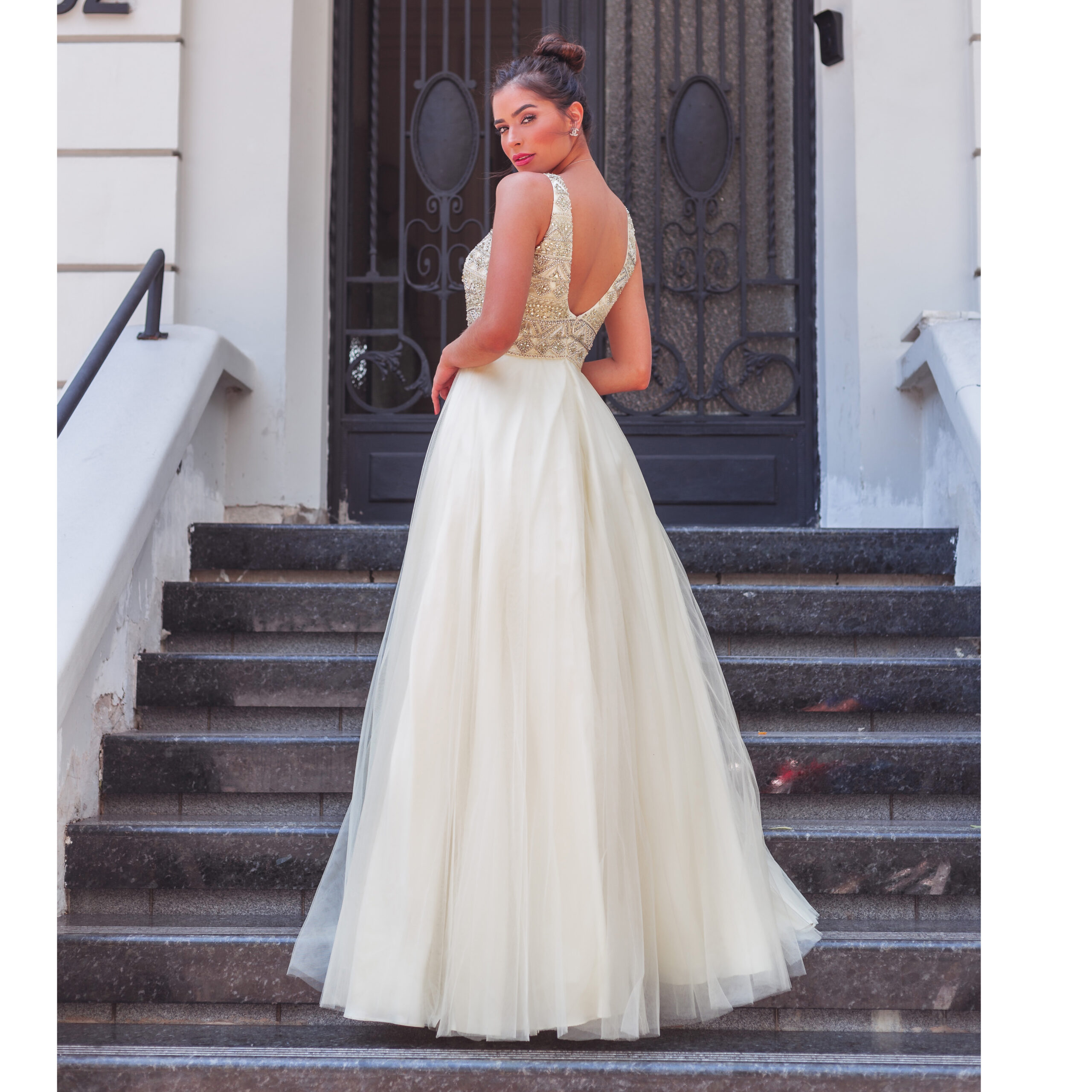 Vestido Grace Importado Paete, Detalhe Lateral e Saia de Tul