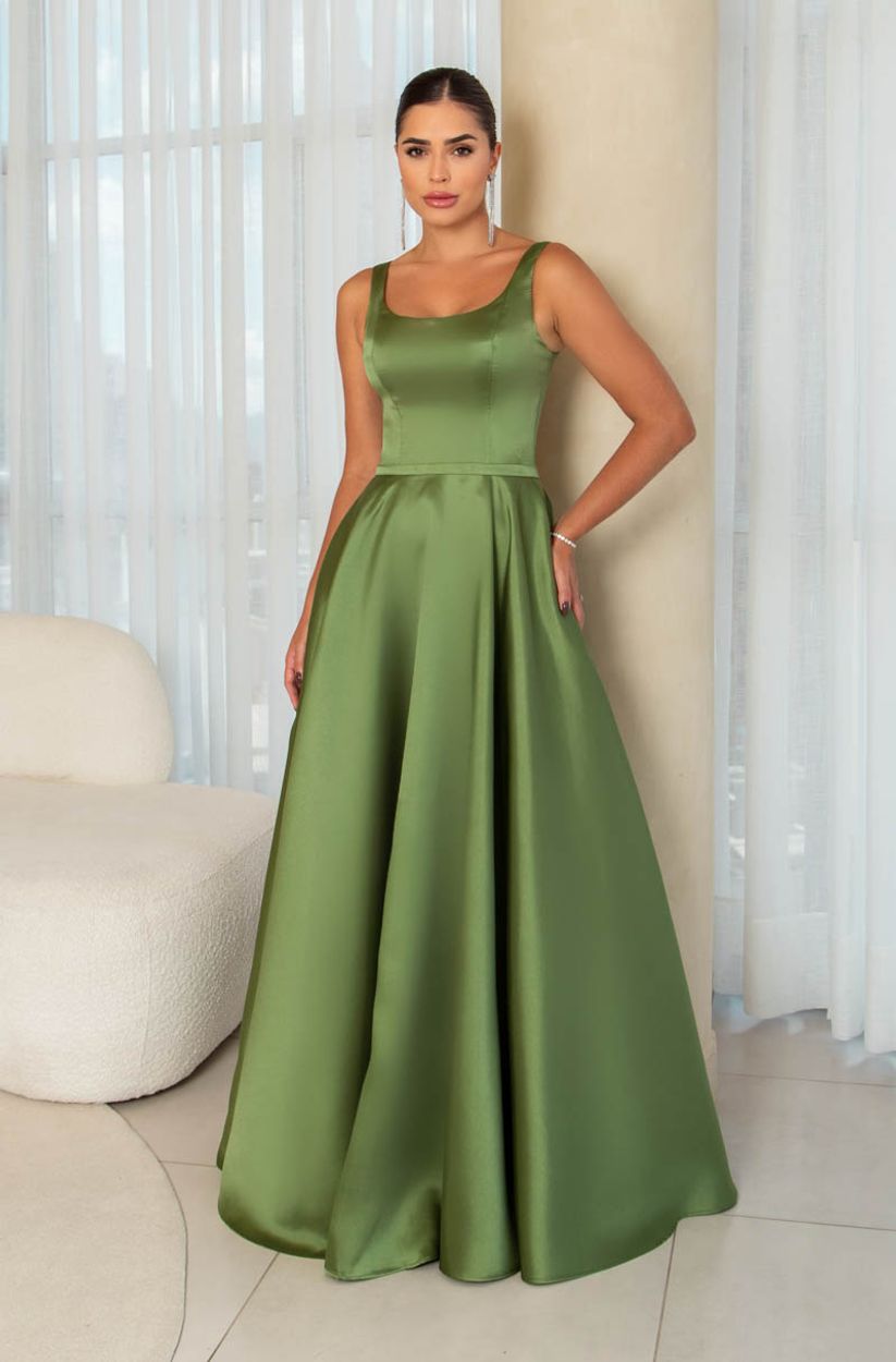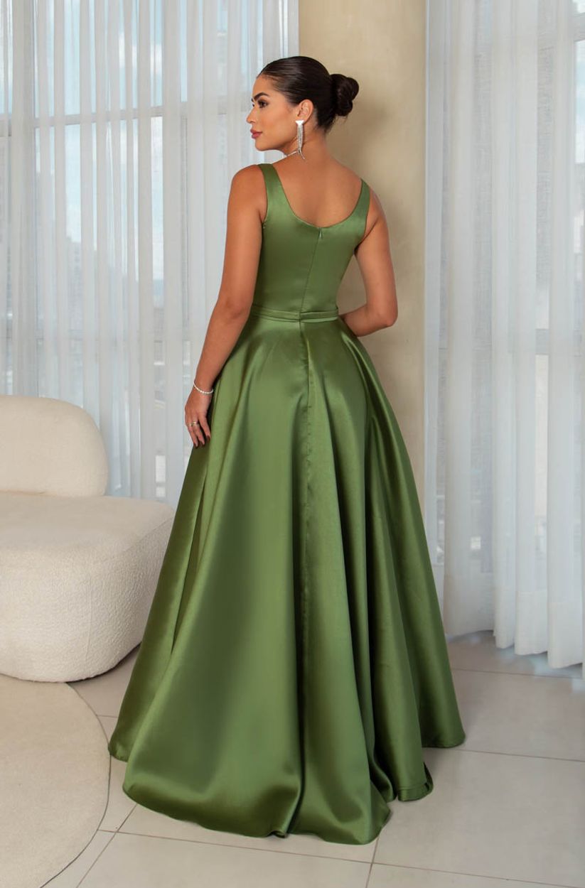 Vestido Dalilah Zibeline, Cinto e Saia Rodada – Oliva
