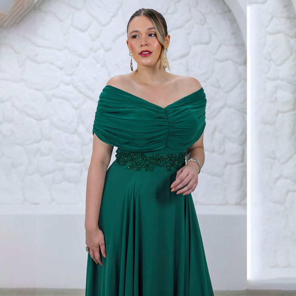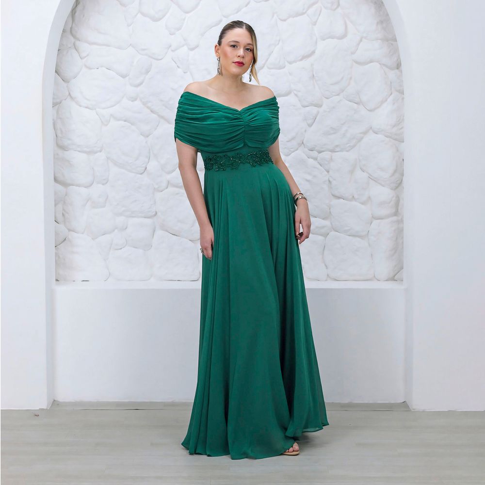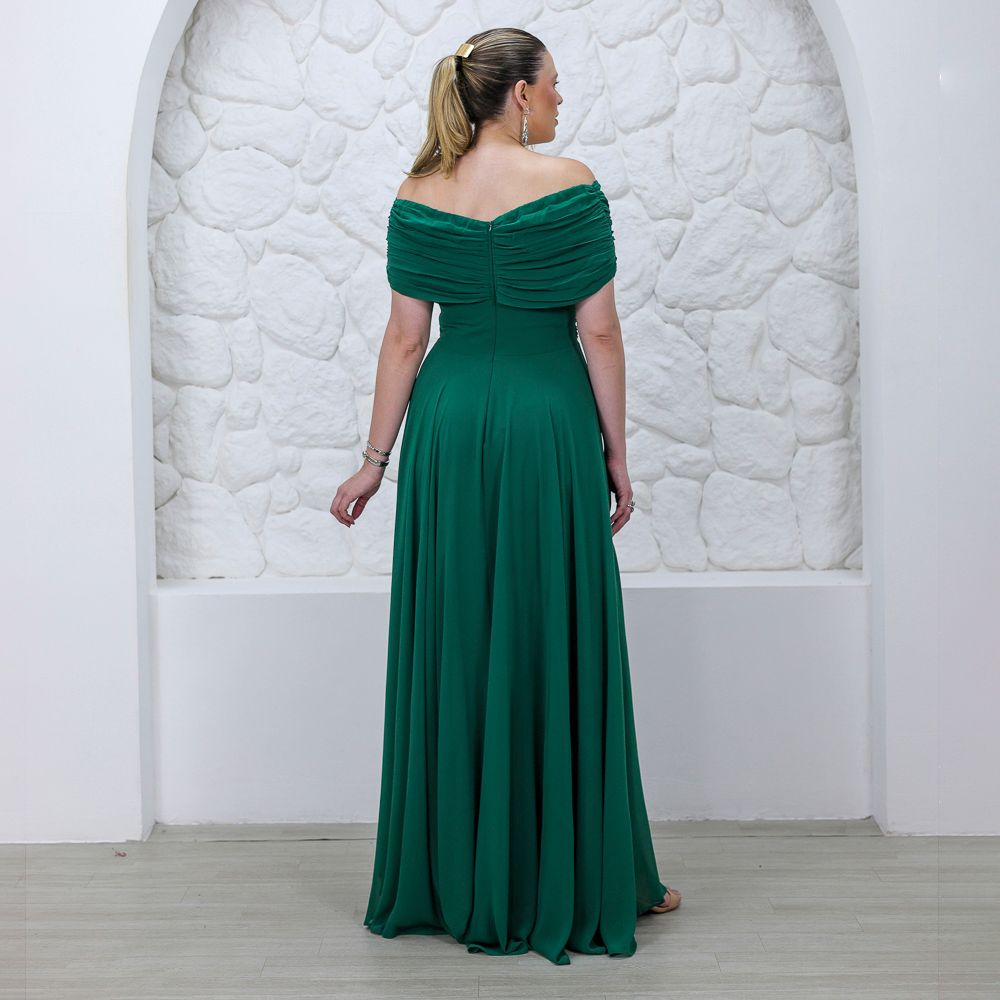 Vestido Denisy Chiffon Ombro A Ombro com Saia Rodada – Musgo