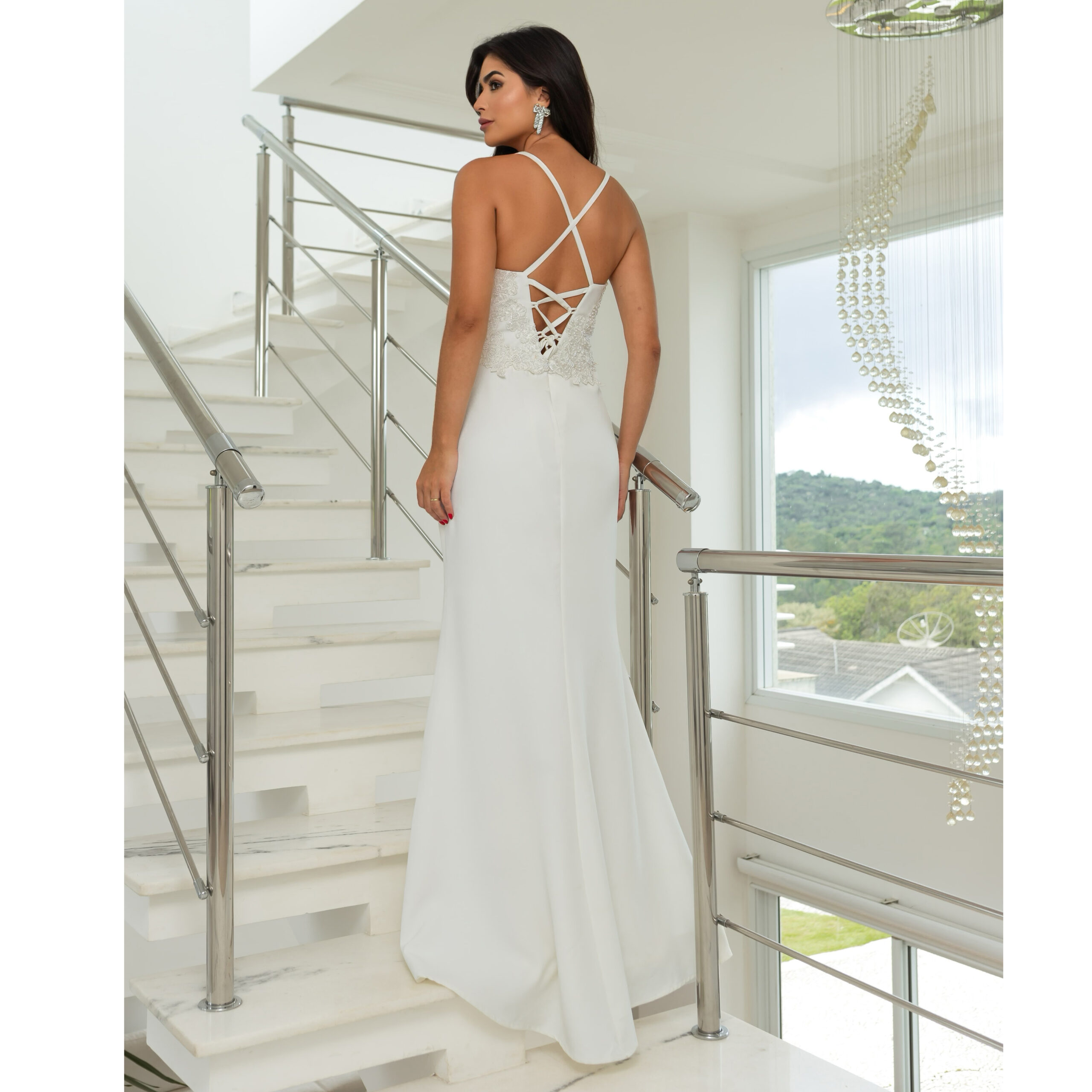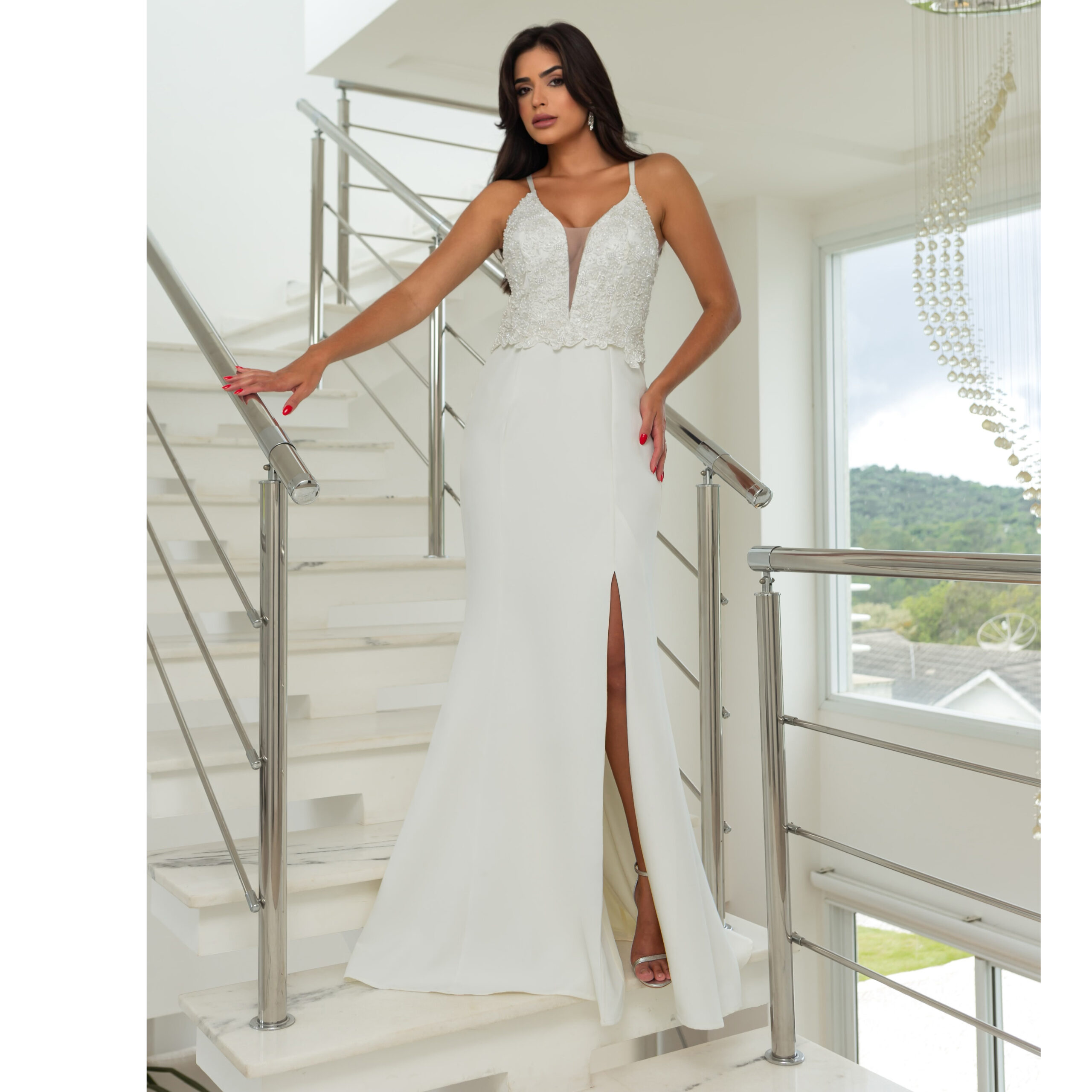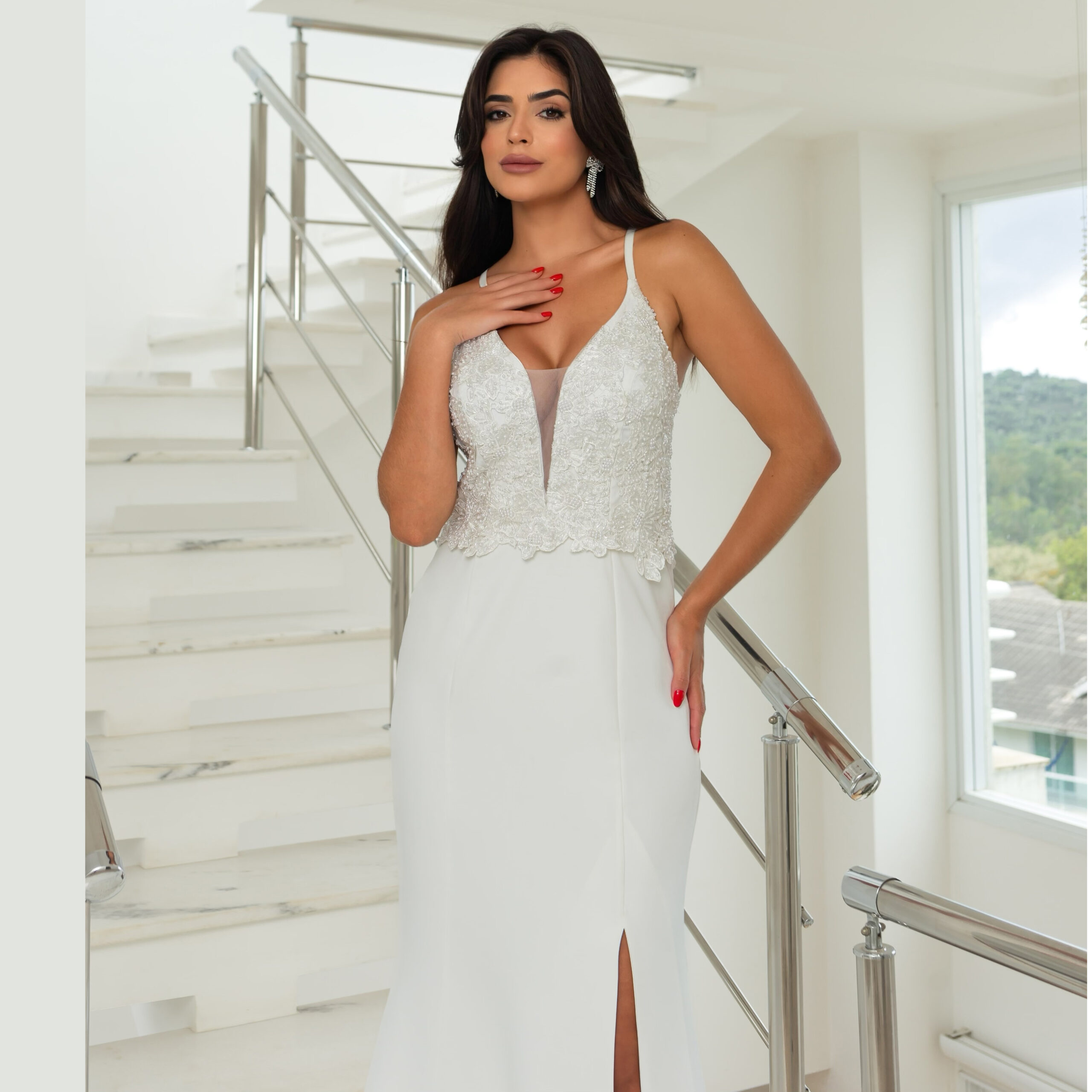 Vestido Eliana Noiva Bordado, Costa Trançada e Saia Fenda Al