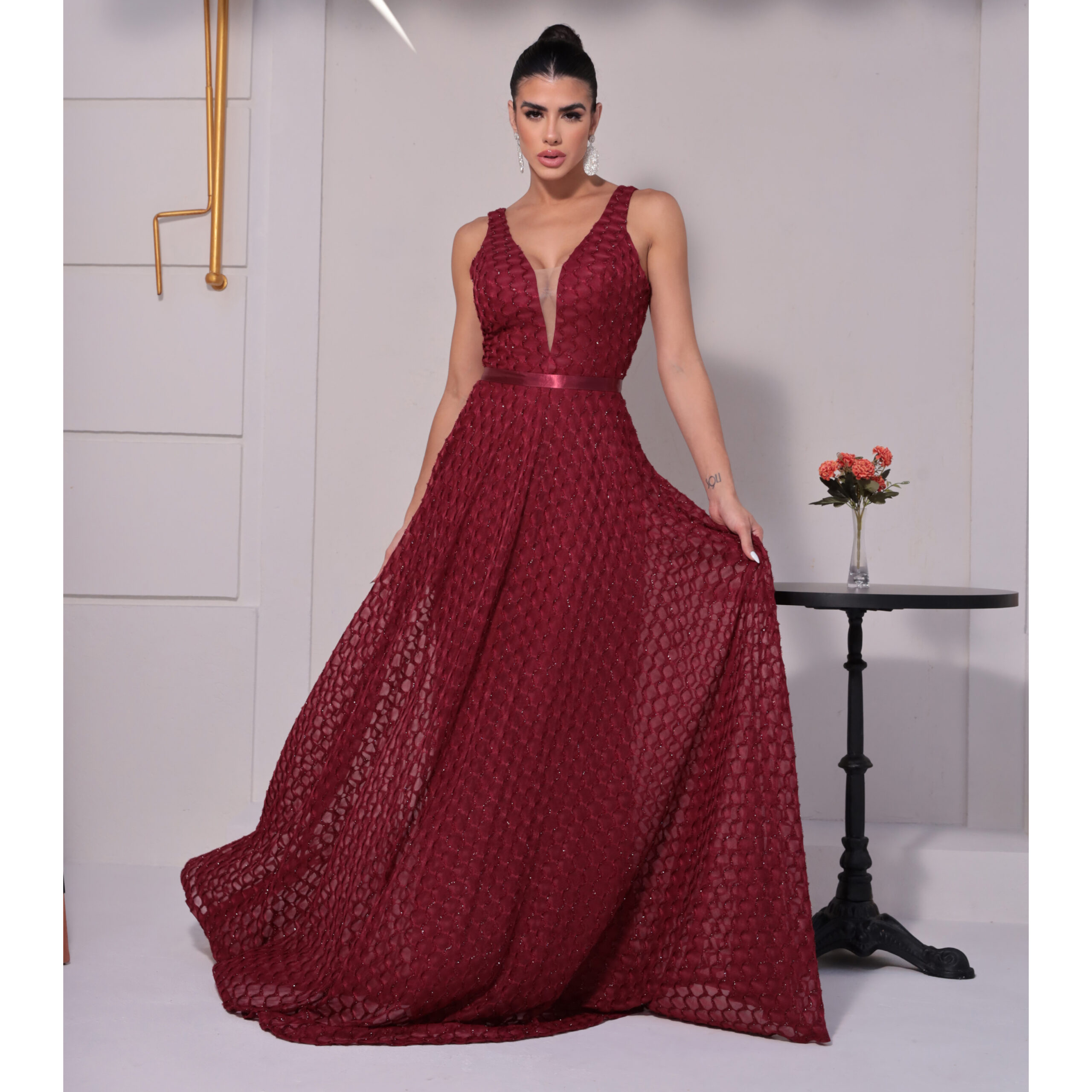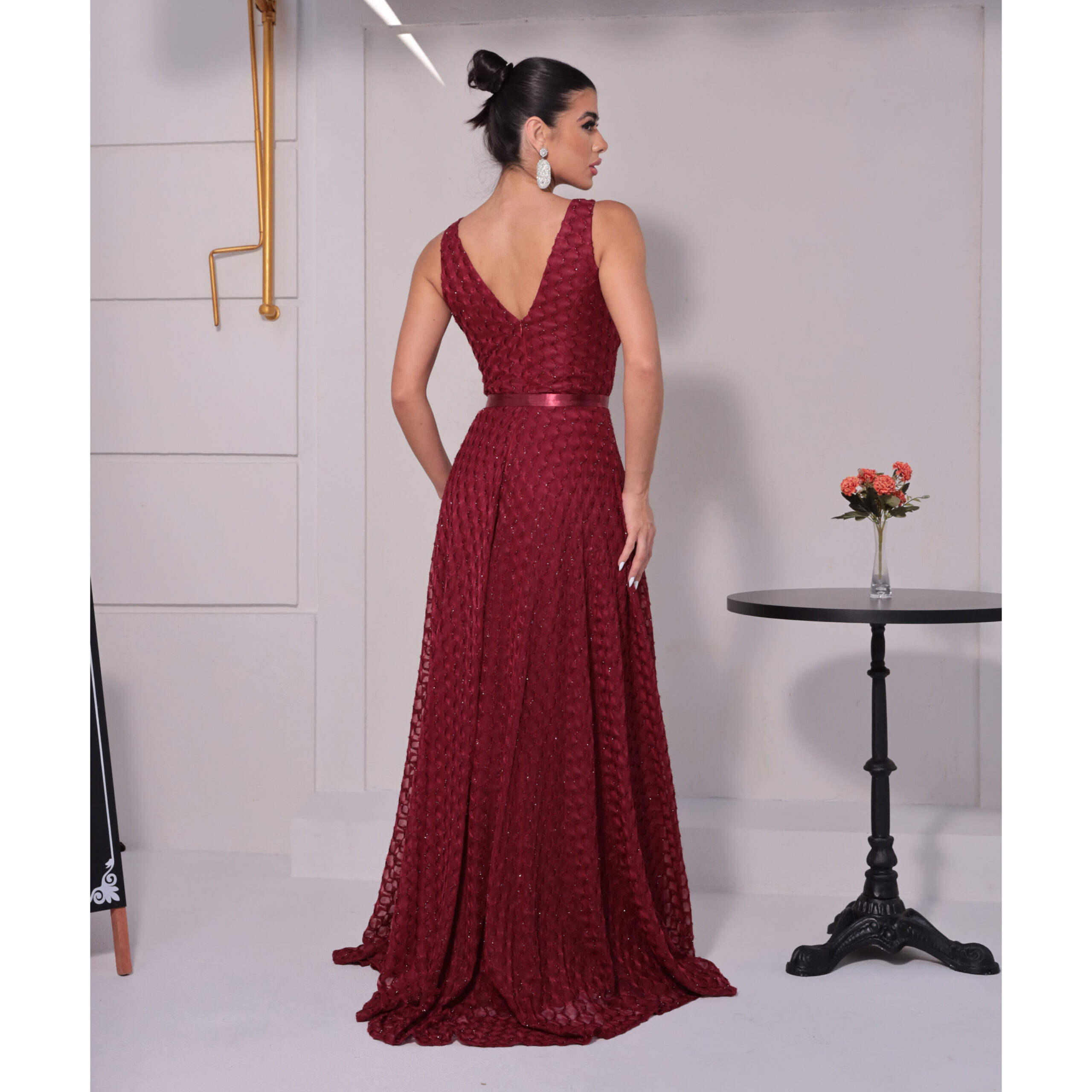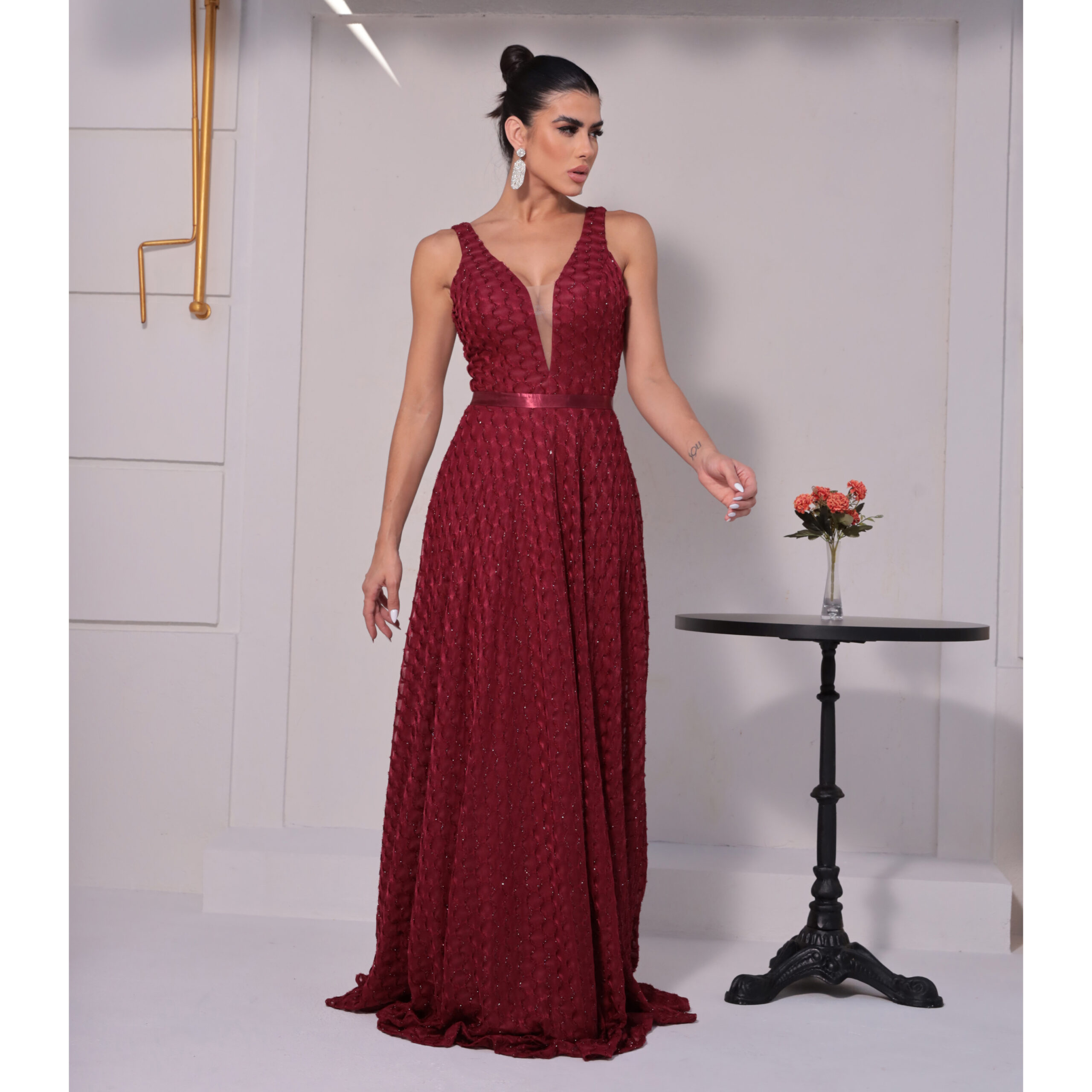 Vestido Ellen 3d Trabalhado e Saia Rodada – Marsala