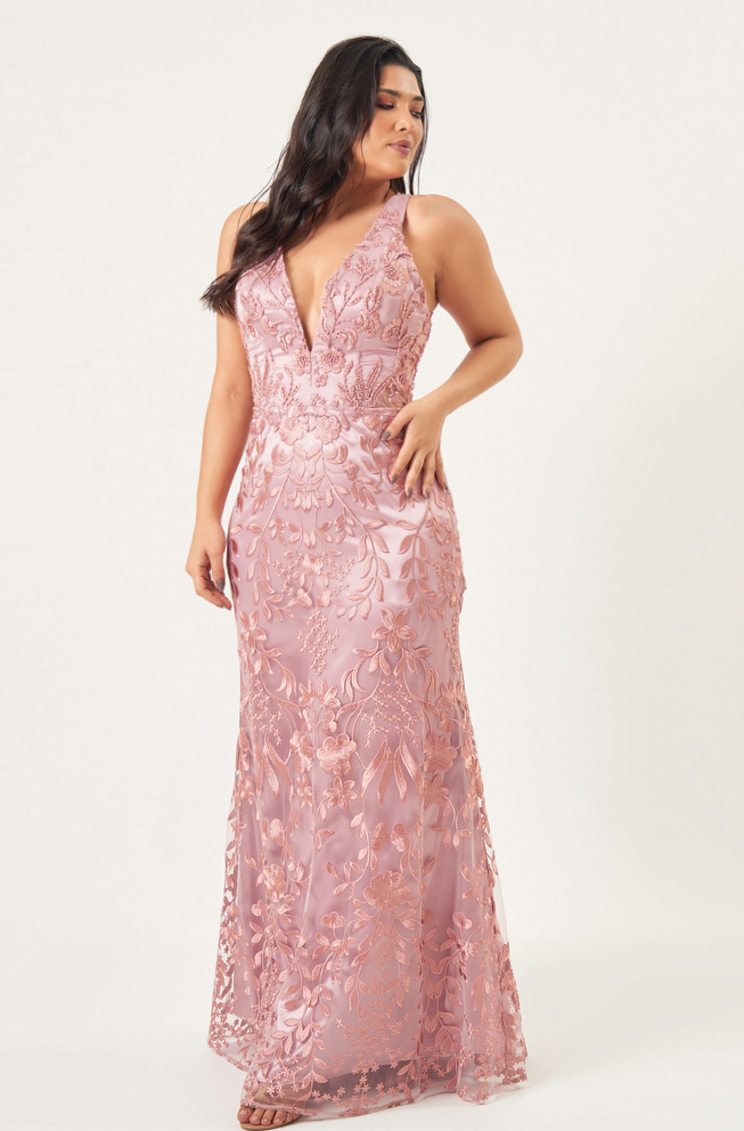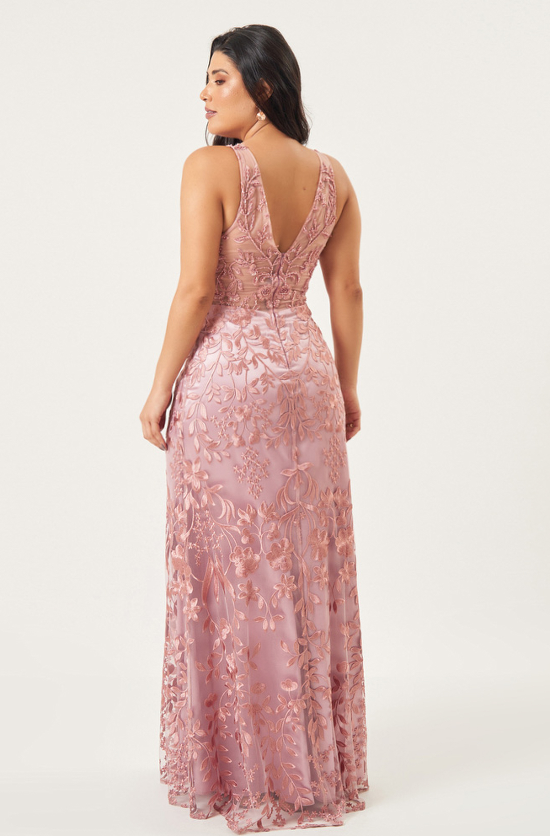 Vestido Evalina Tule Bordado Decotado Saia Sereia – Rose