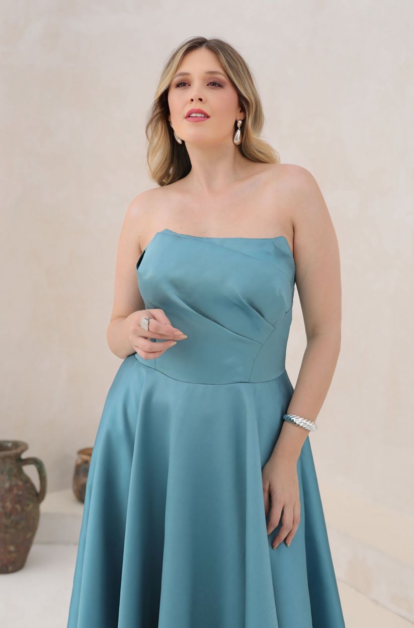 Vestido Evie Zibeline Tqc Prega e Saia Rodada – Topazio