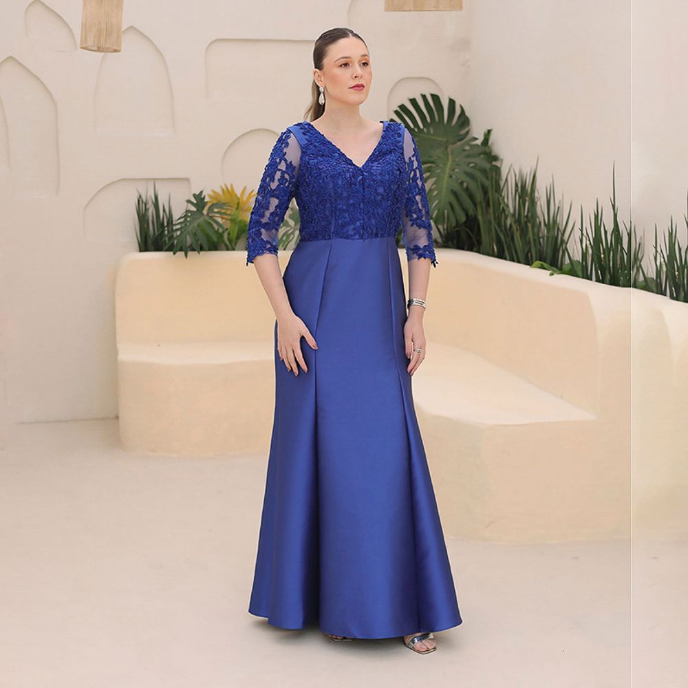 Vestido Genevi Zibeline Busto e Manga Bordada e Saia Sereia – Royal