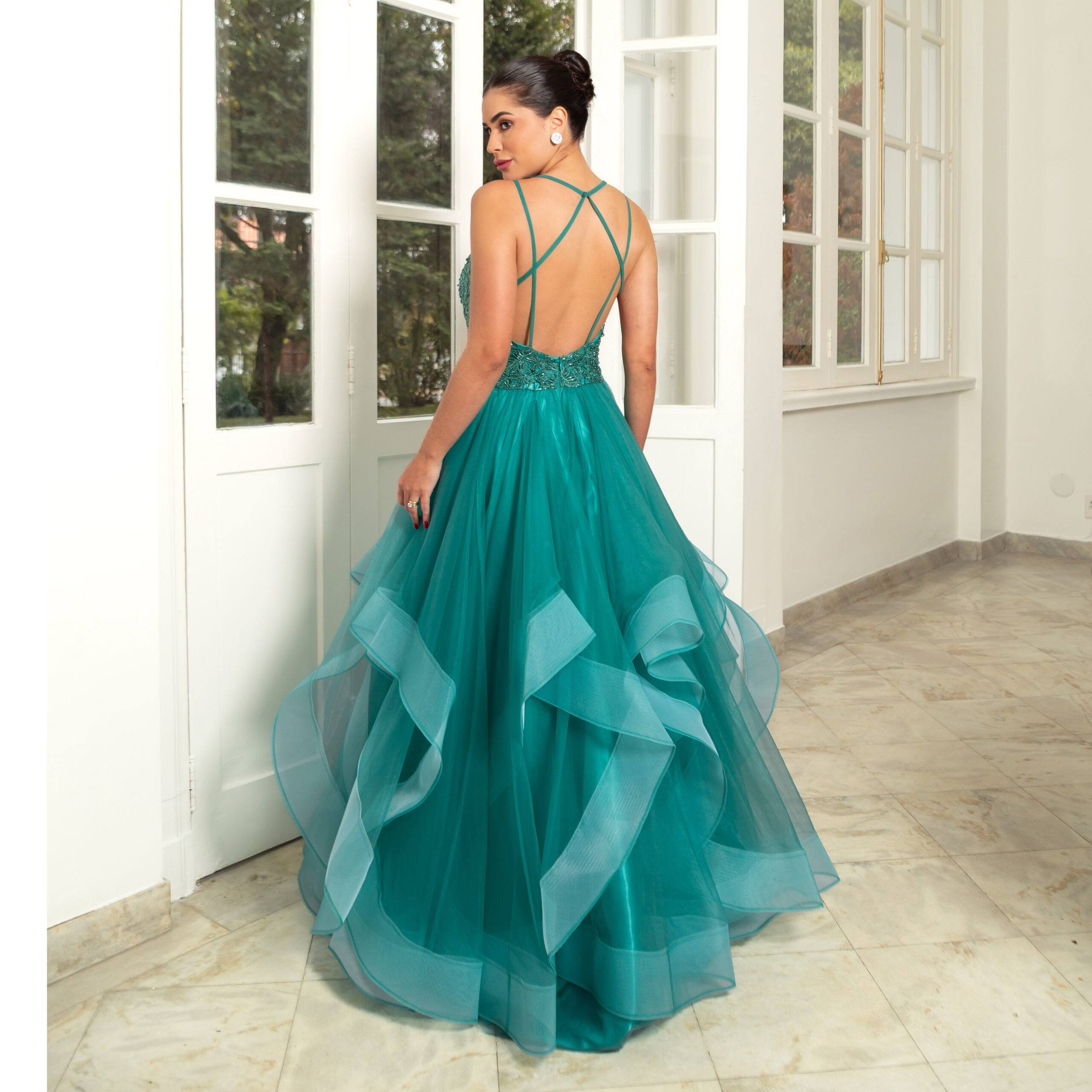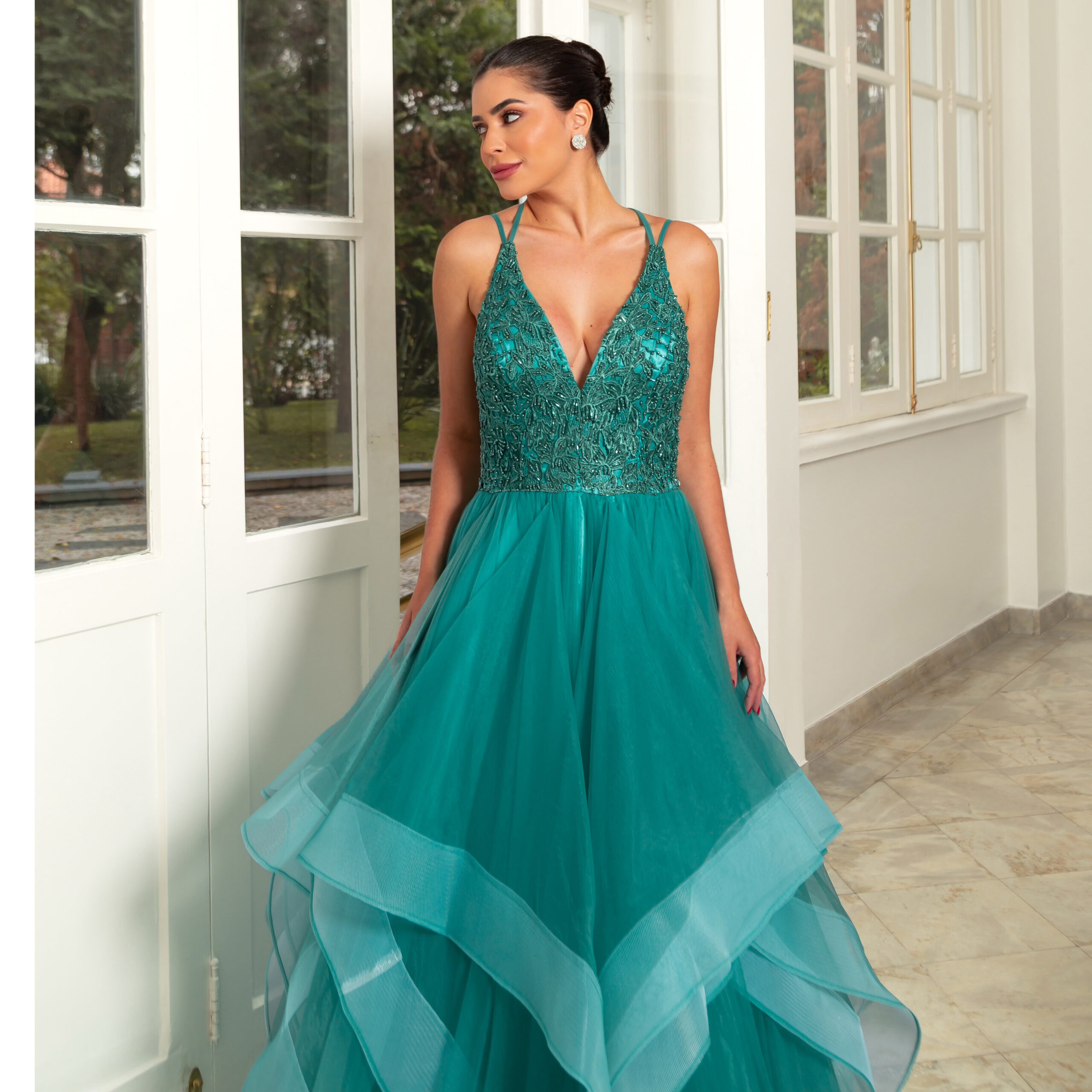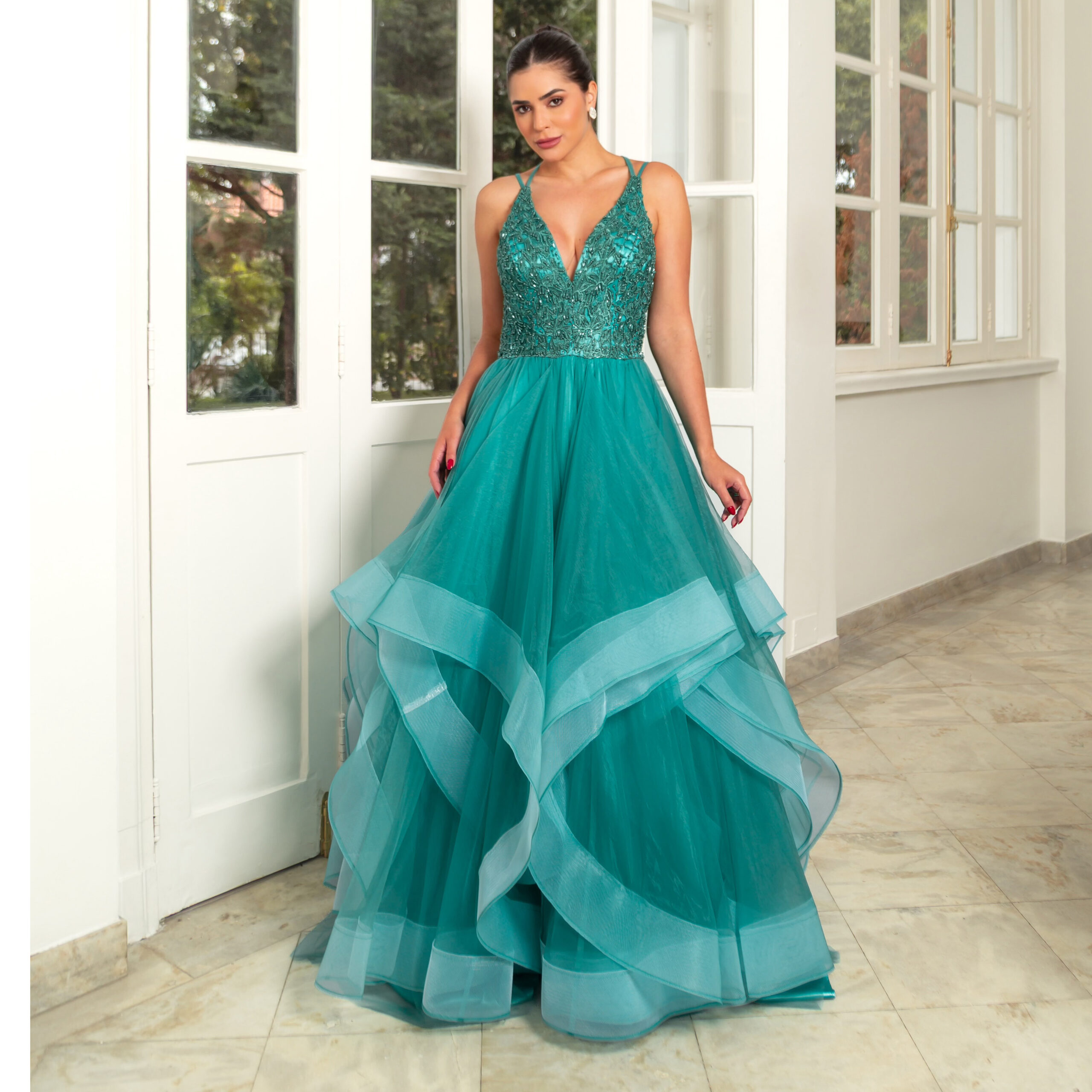 Vestido Kamila Importado Busto Bordado e Saia de Tule Rodada