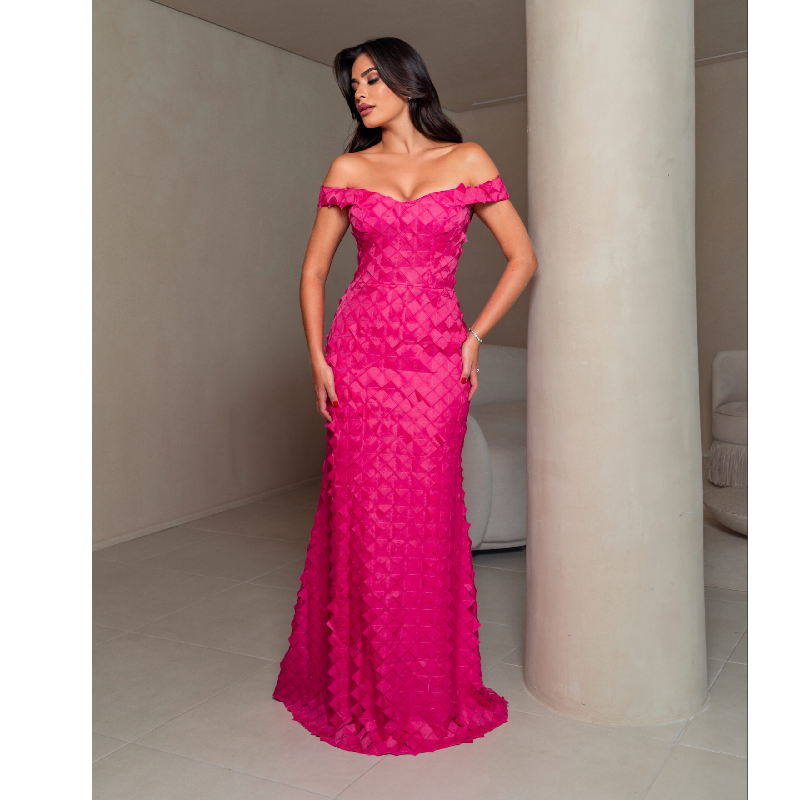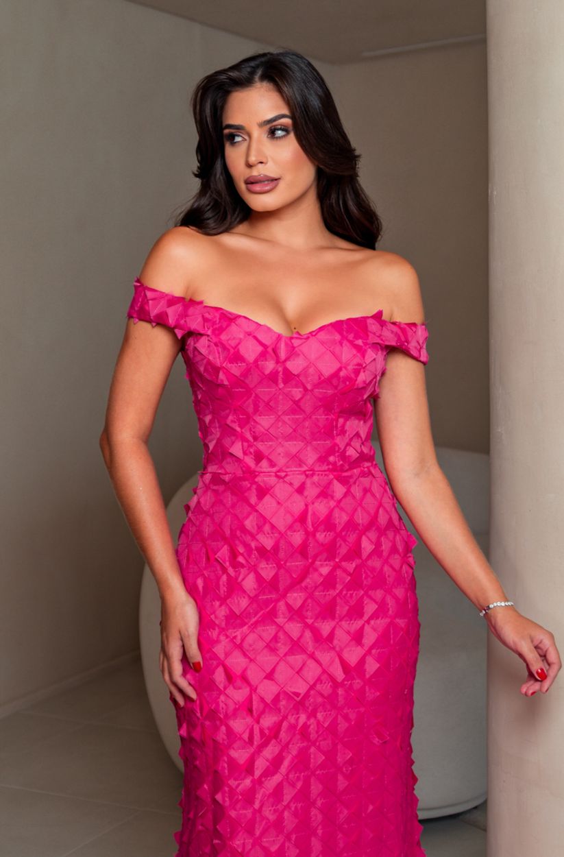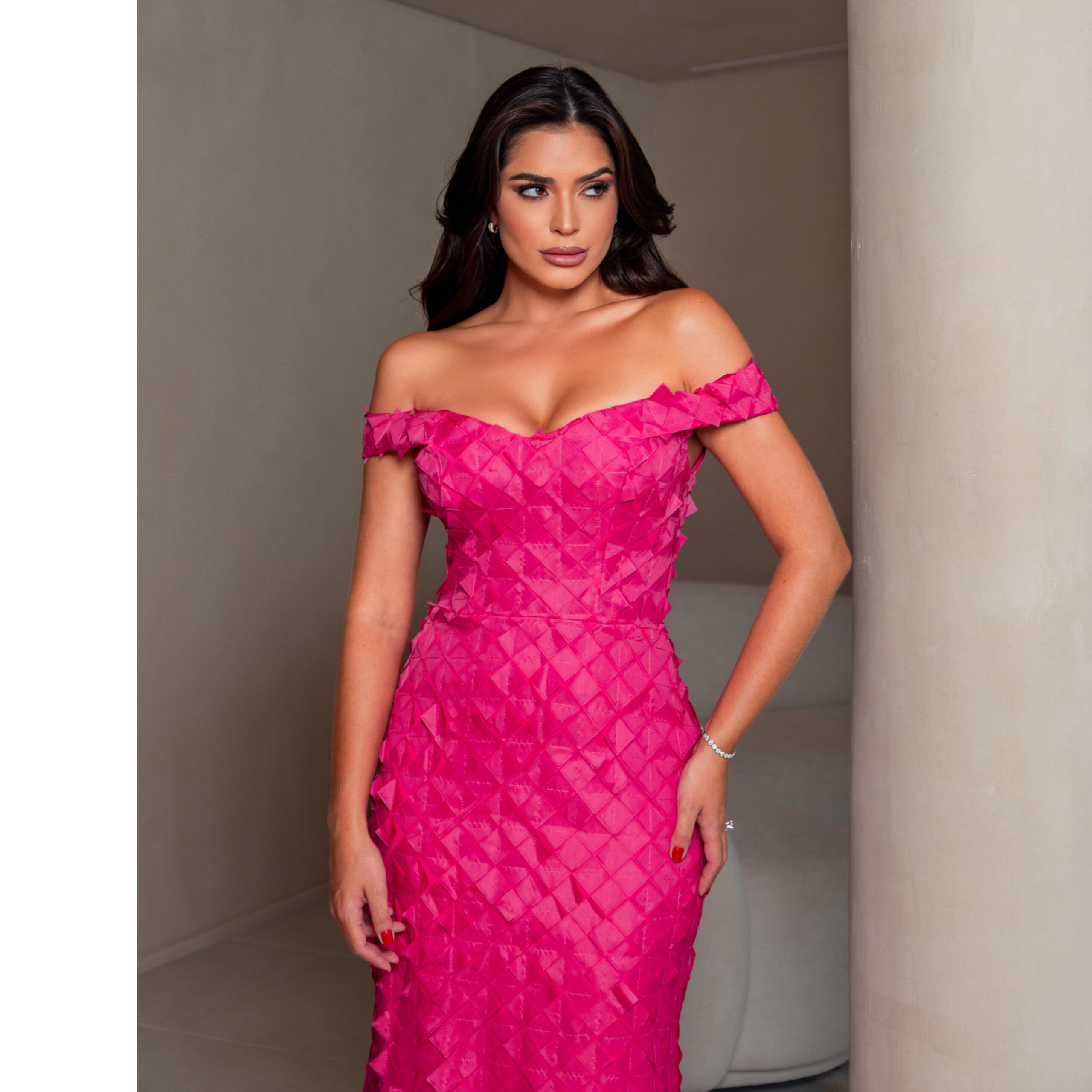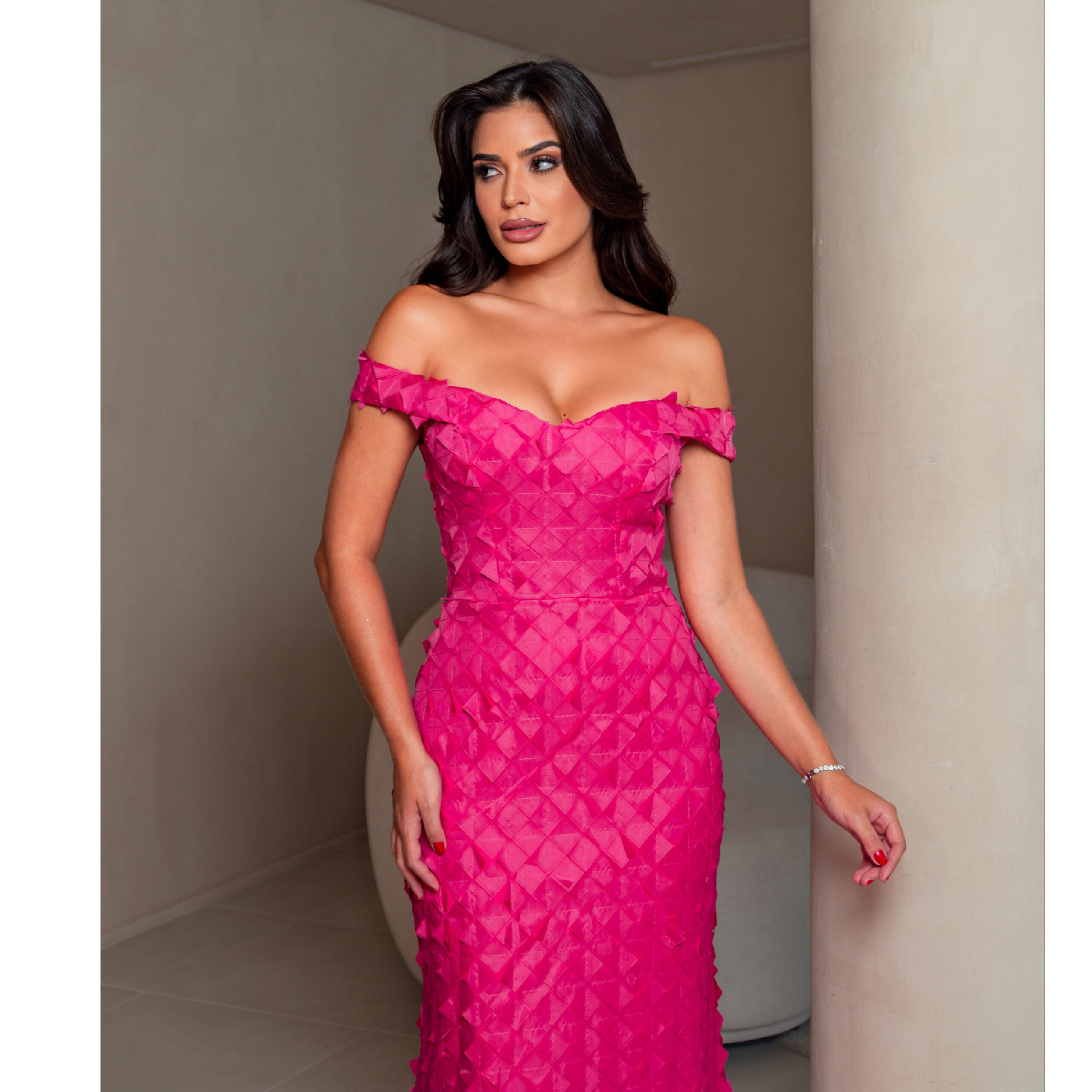 Vestido Ivy Tule Bordado Ombro A Ombro Saia Sereia – Pink