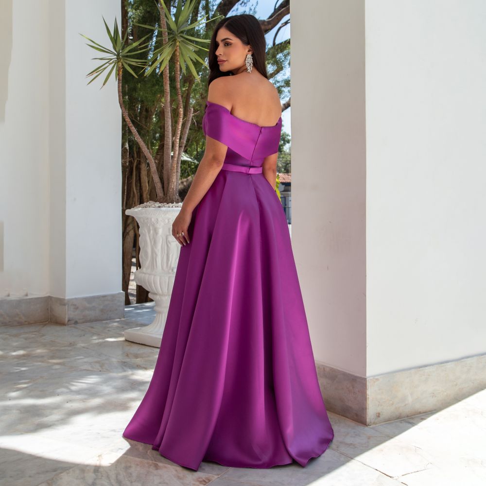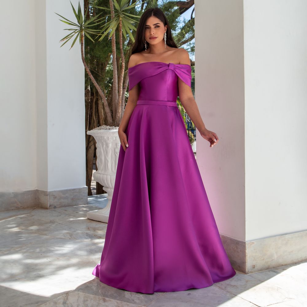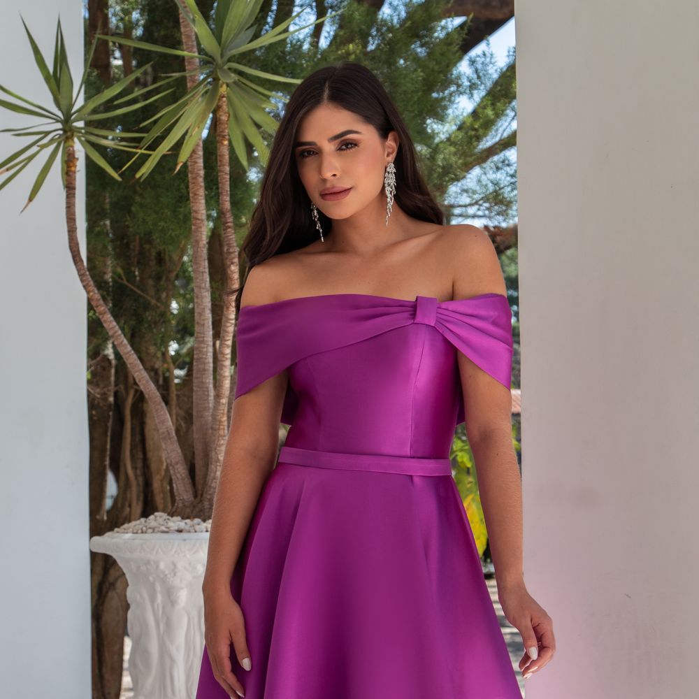 Vestido Kallina Zibeline Ombro Ombro com Saia Rodada – Fuchsia