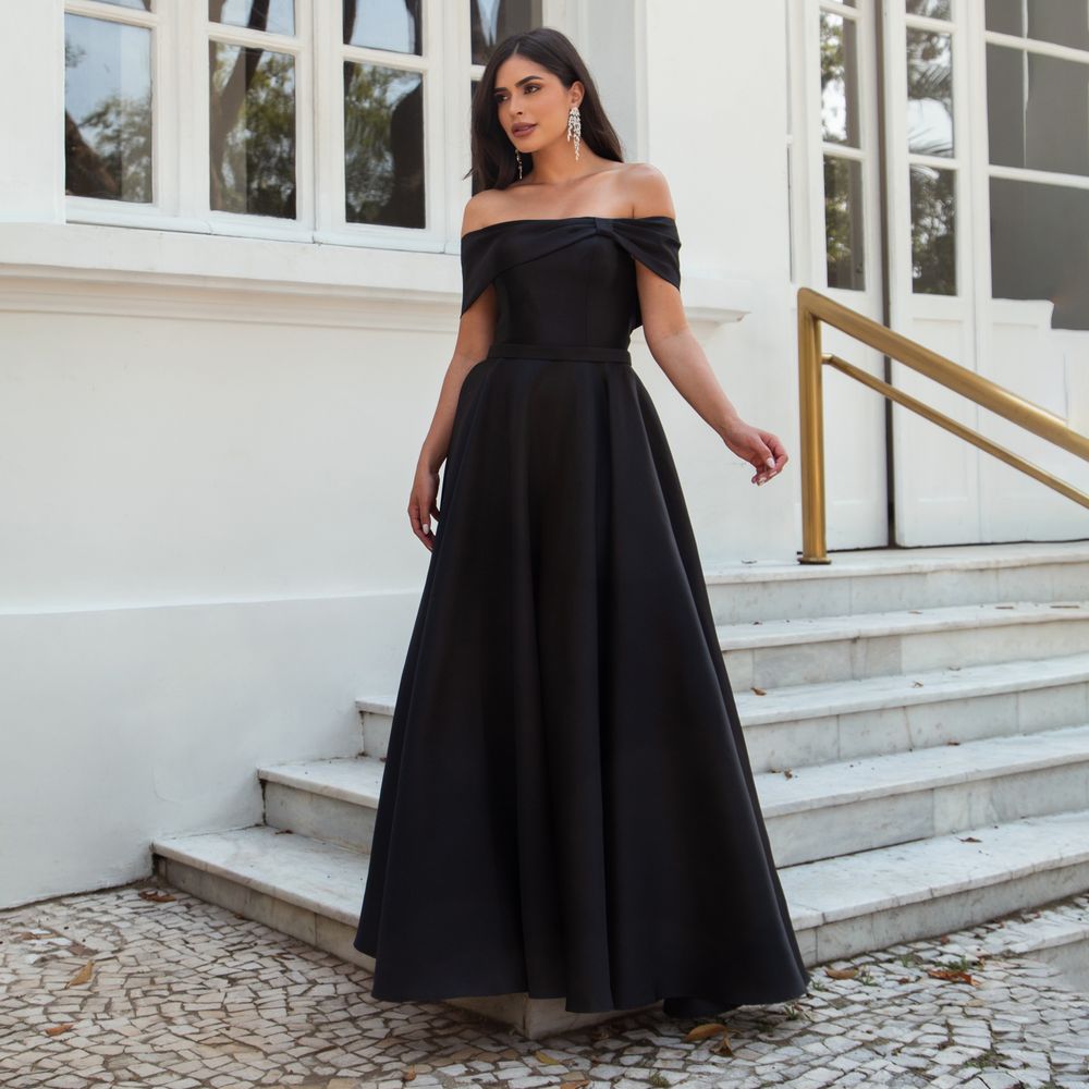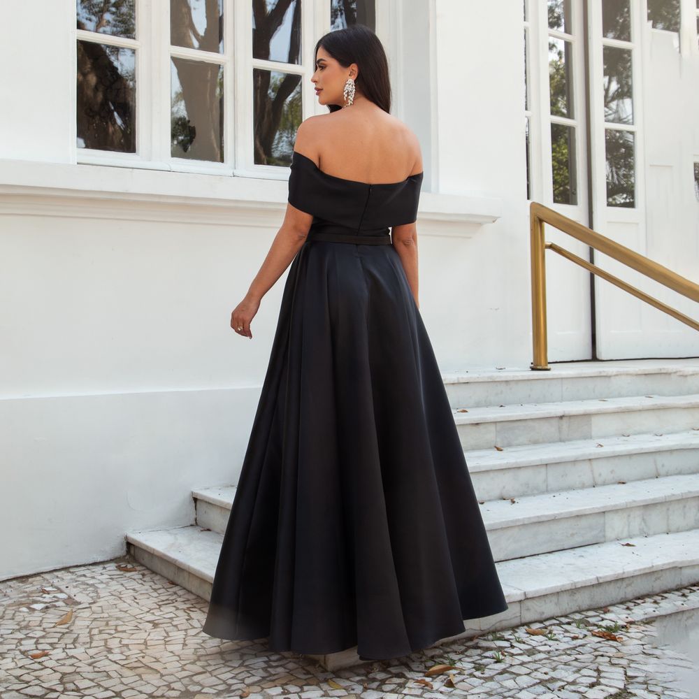 Vestido Kallina Zibeline Ombro Ombro com Saia Rodada – Preto