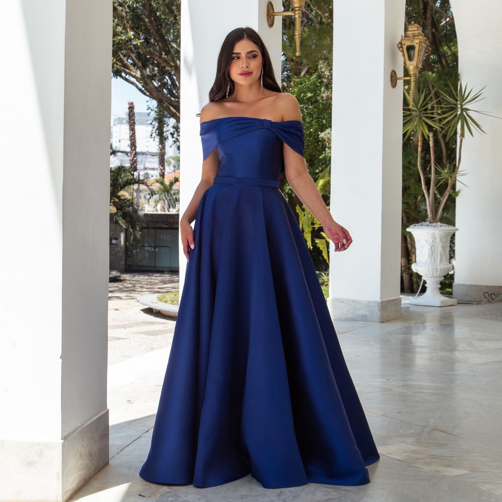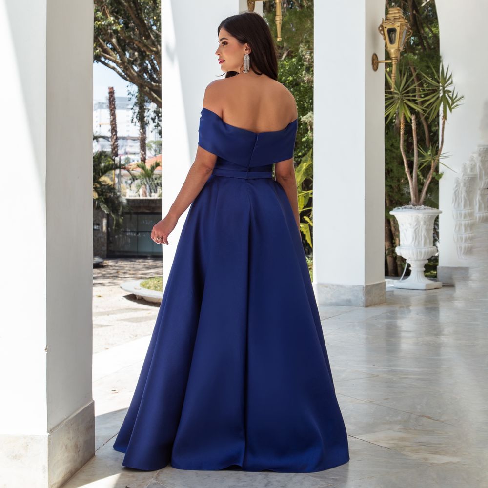 Vestido Kallina Zibeline Ombro Ombro com Saia Rodada – Royal