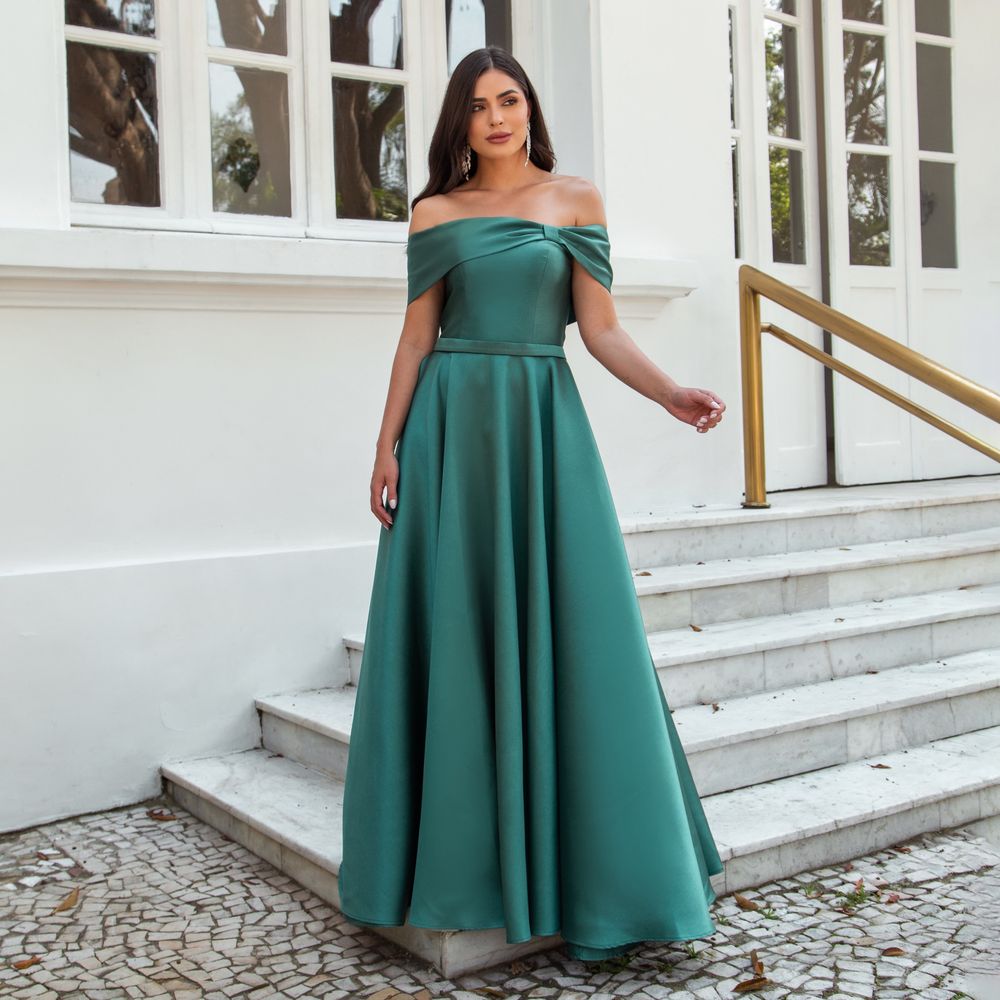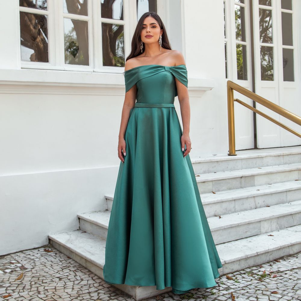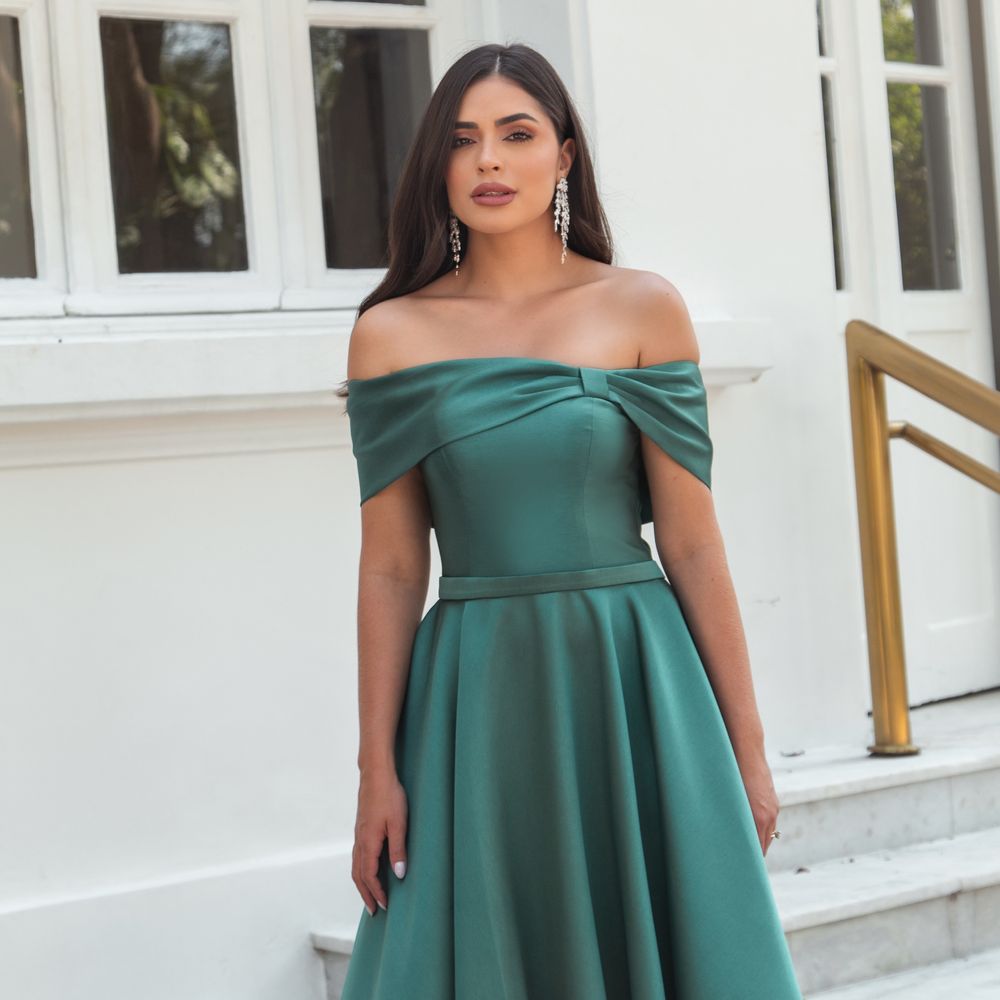 Vestido Kallina Zibeline Ombro Ombro com Saia Rodada – Verde Esmeralda