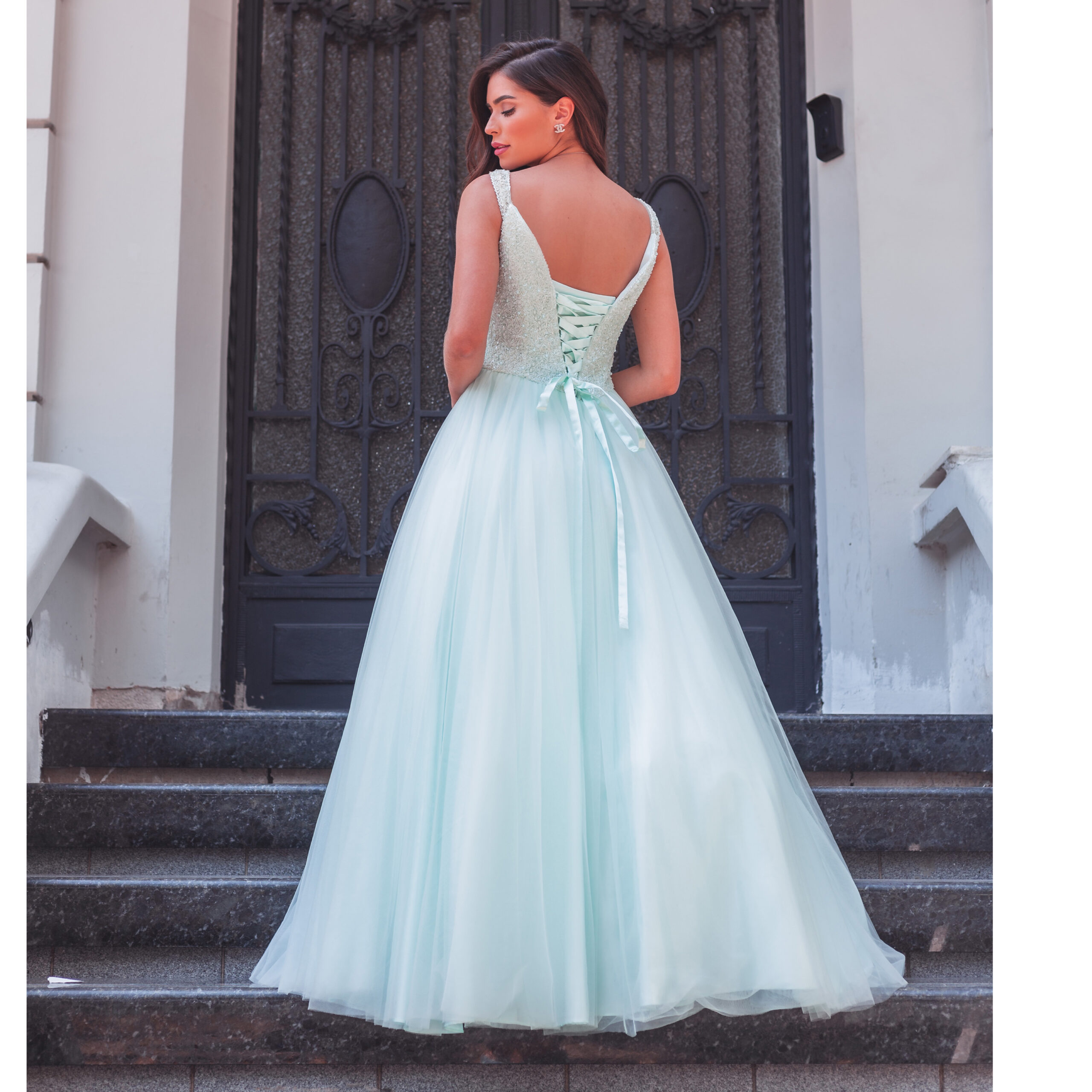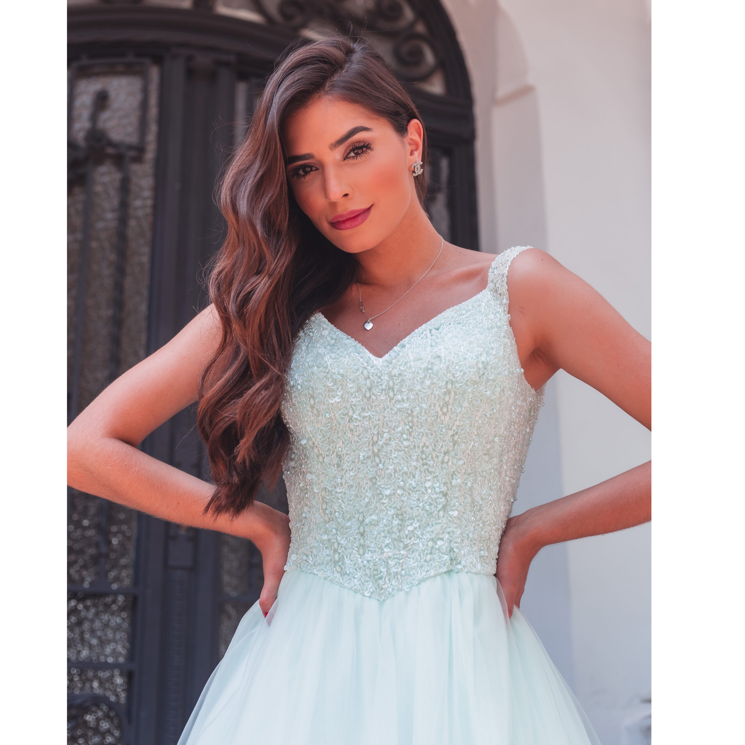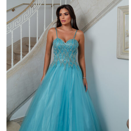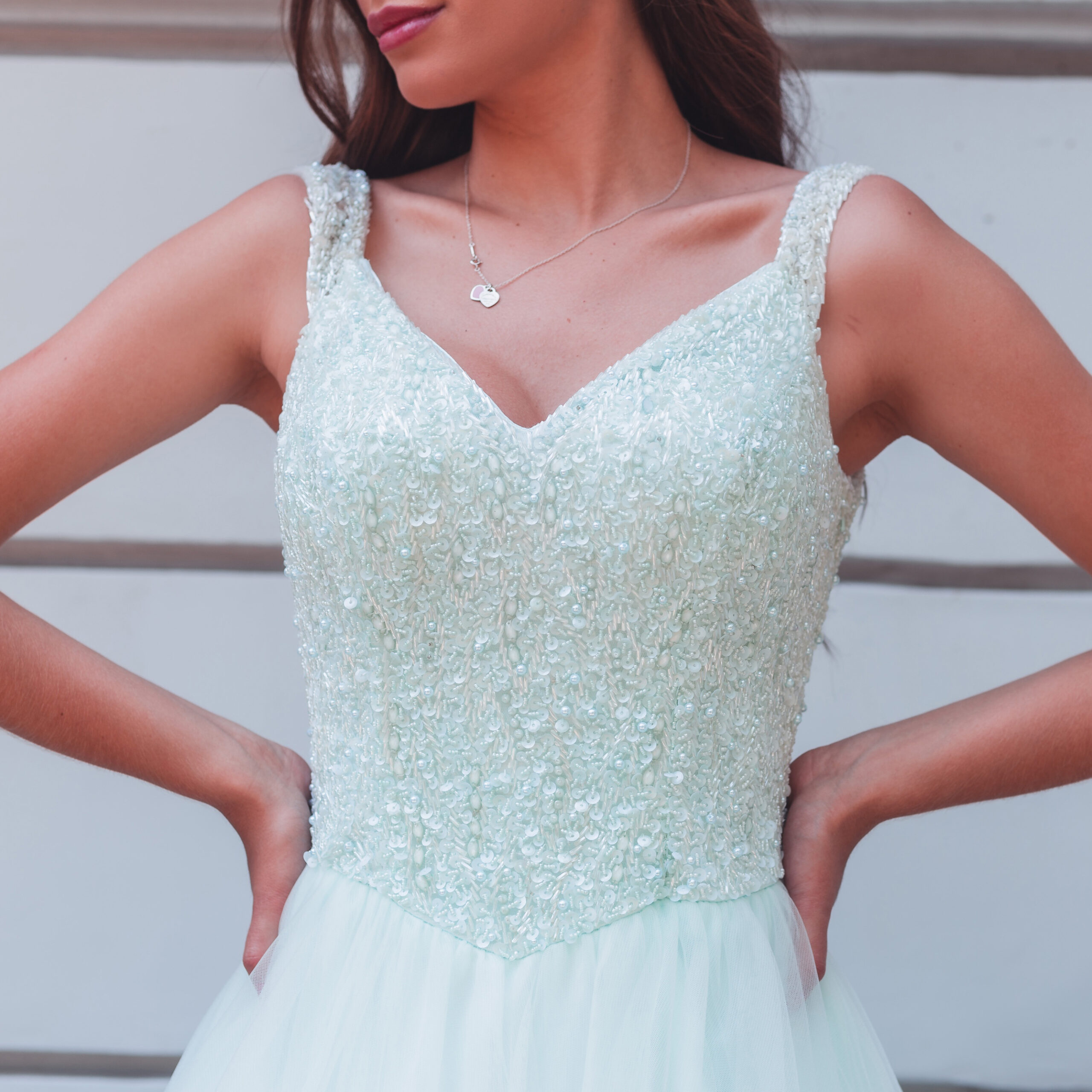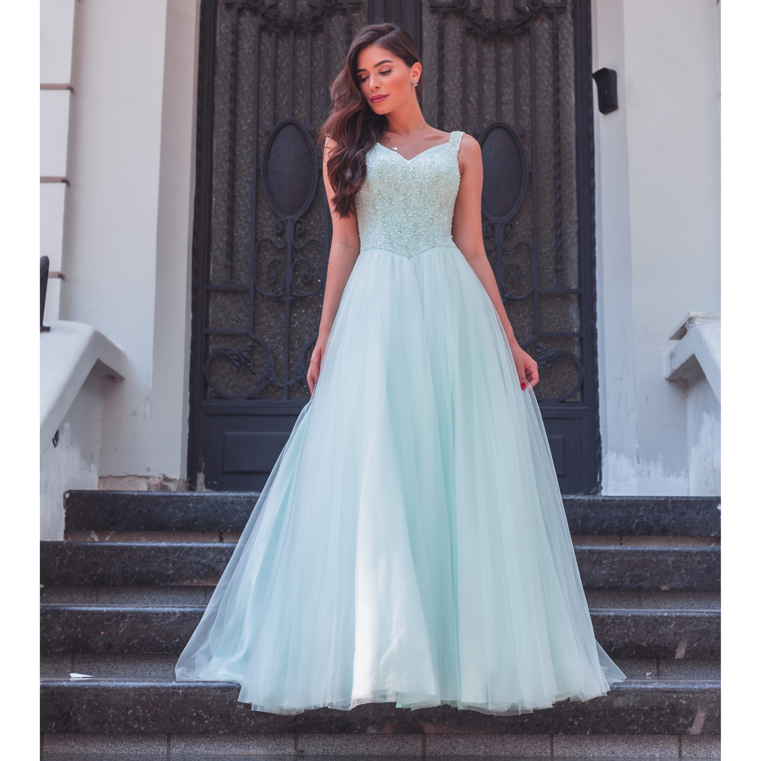 Vestido Kamila Importado Busto Bordado e Saia de Tule Rodada – Tiffany