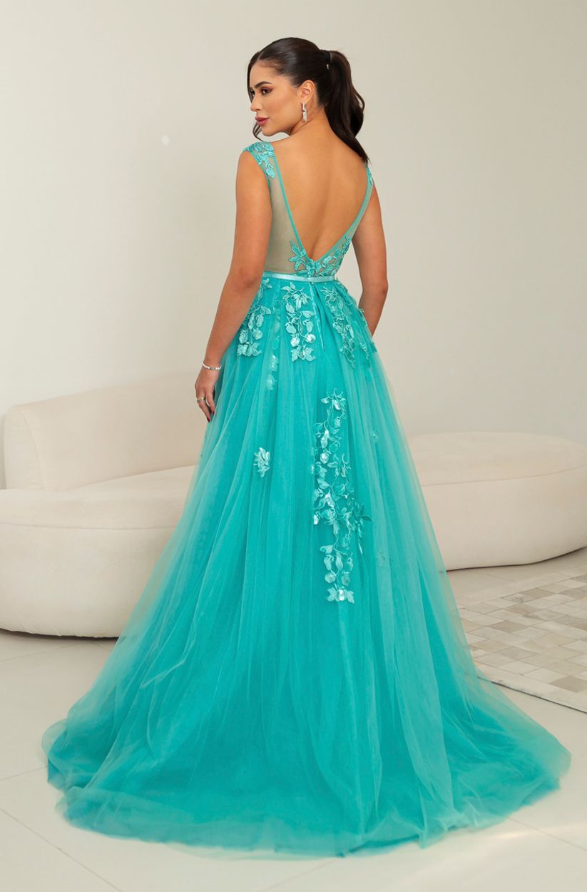 Vestido Hope Importado, Busto Bordado e Saia de Tule Rodada