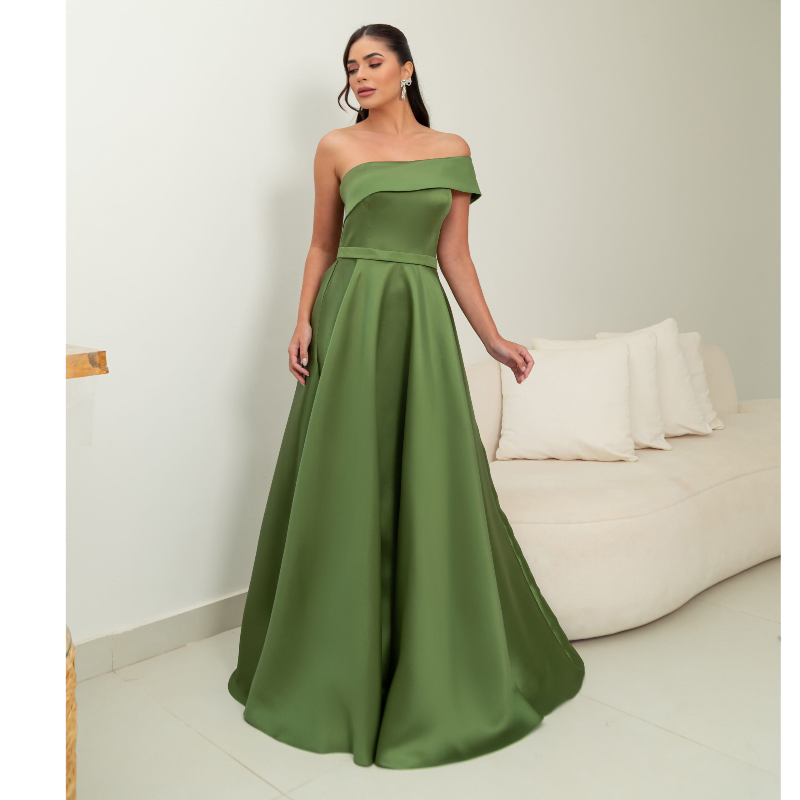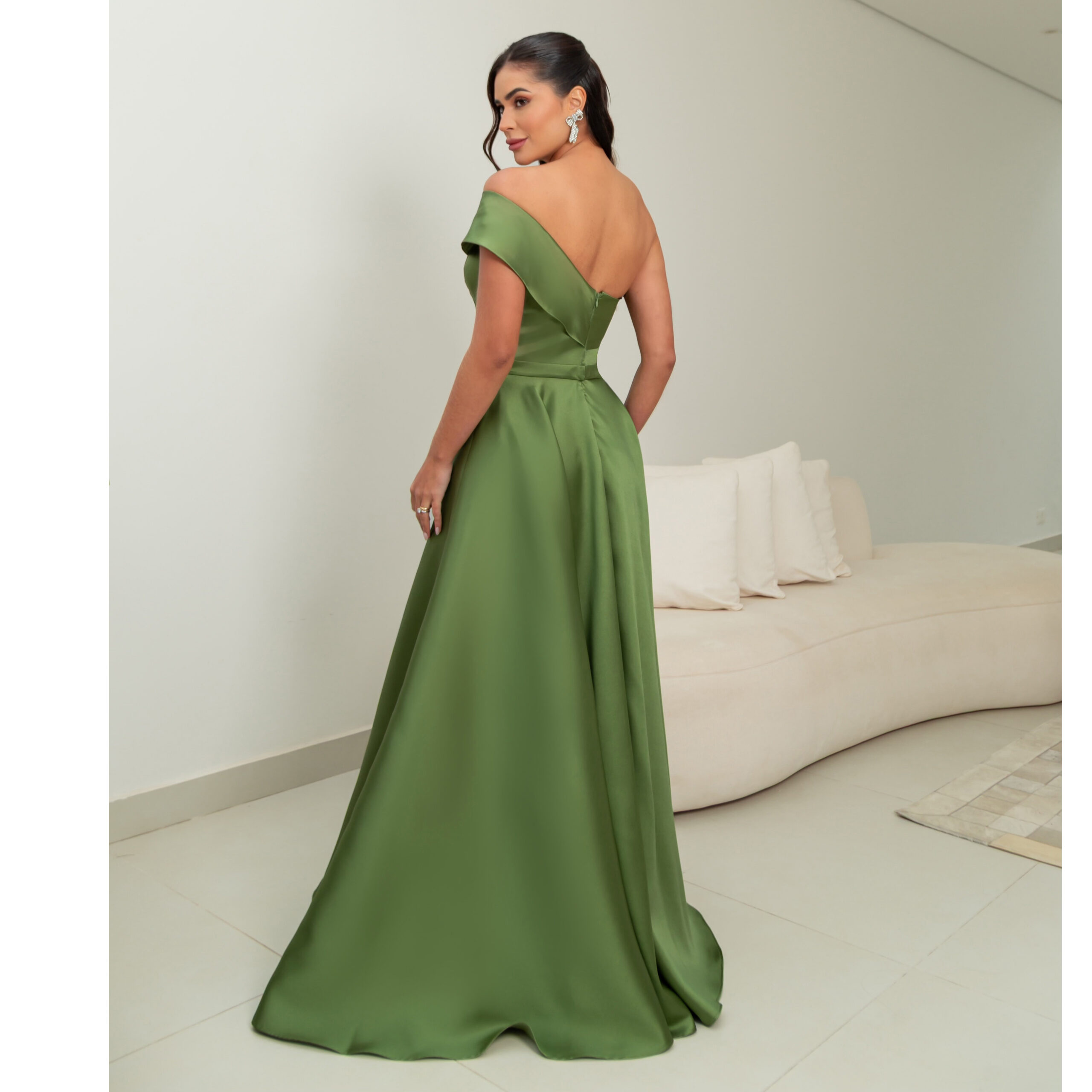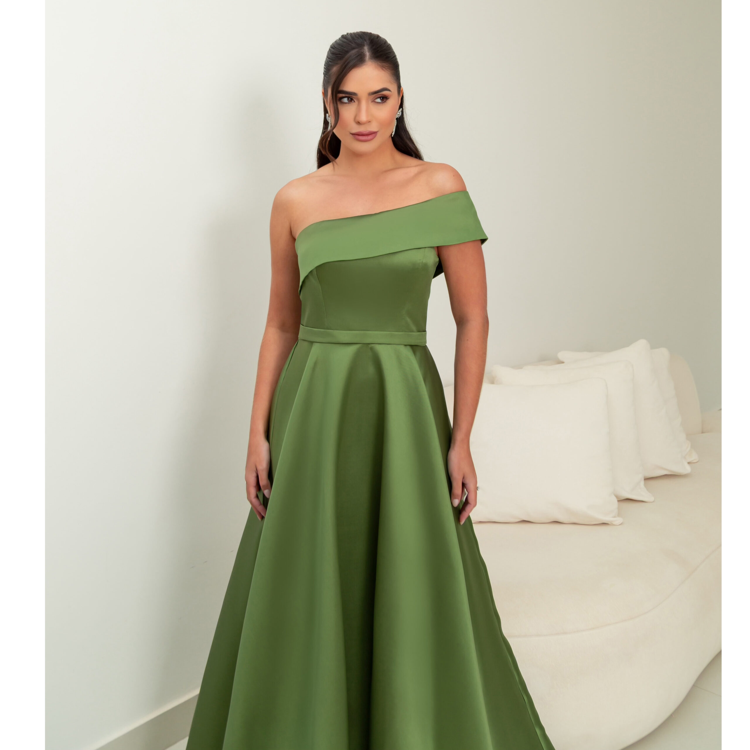Vestido Lilith Zibeline Um Ombro e Saia Rodada – Oliva
