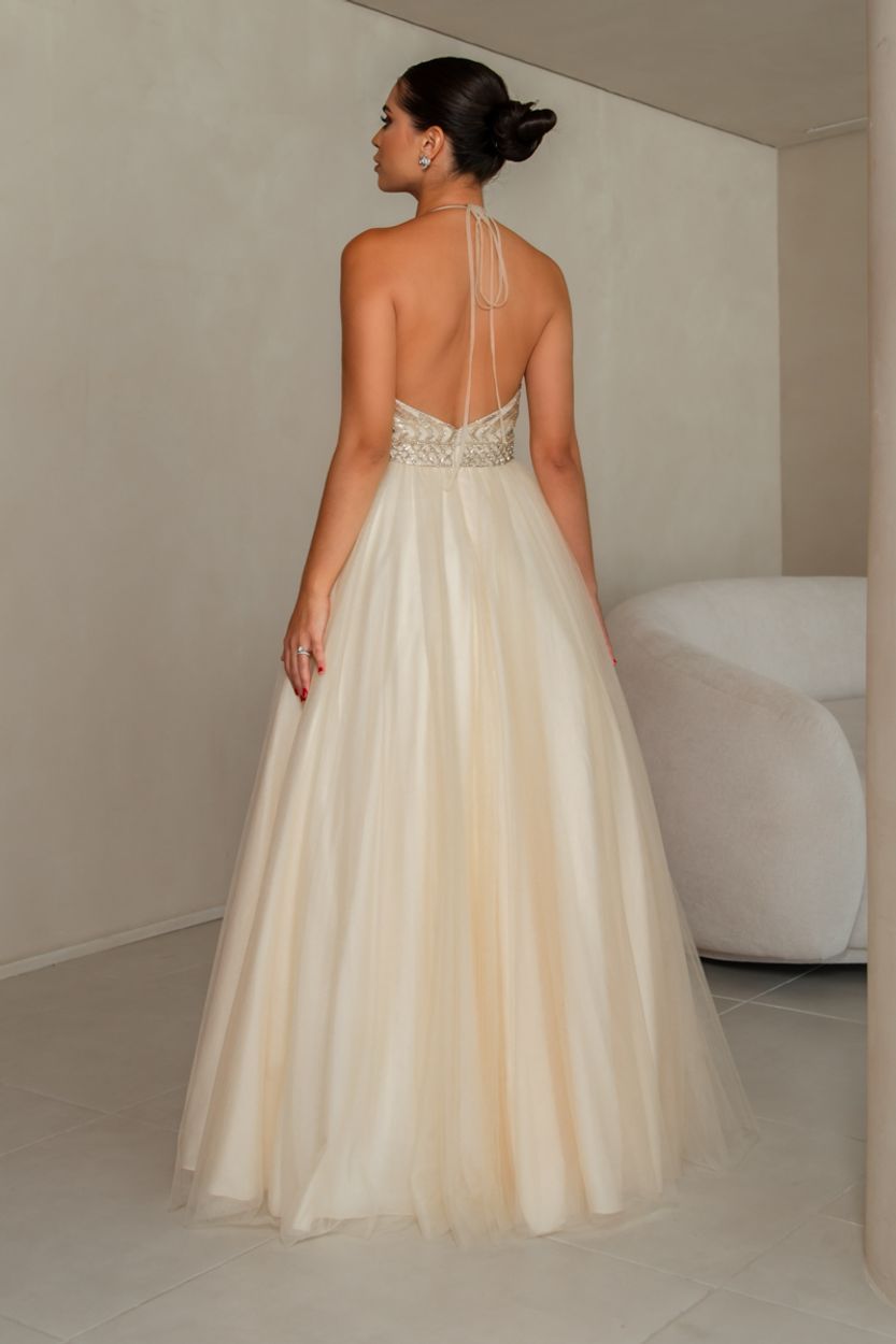 Vestido Kamila Importado Busto Bordado e Saia de Tule Rodada