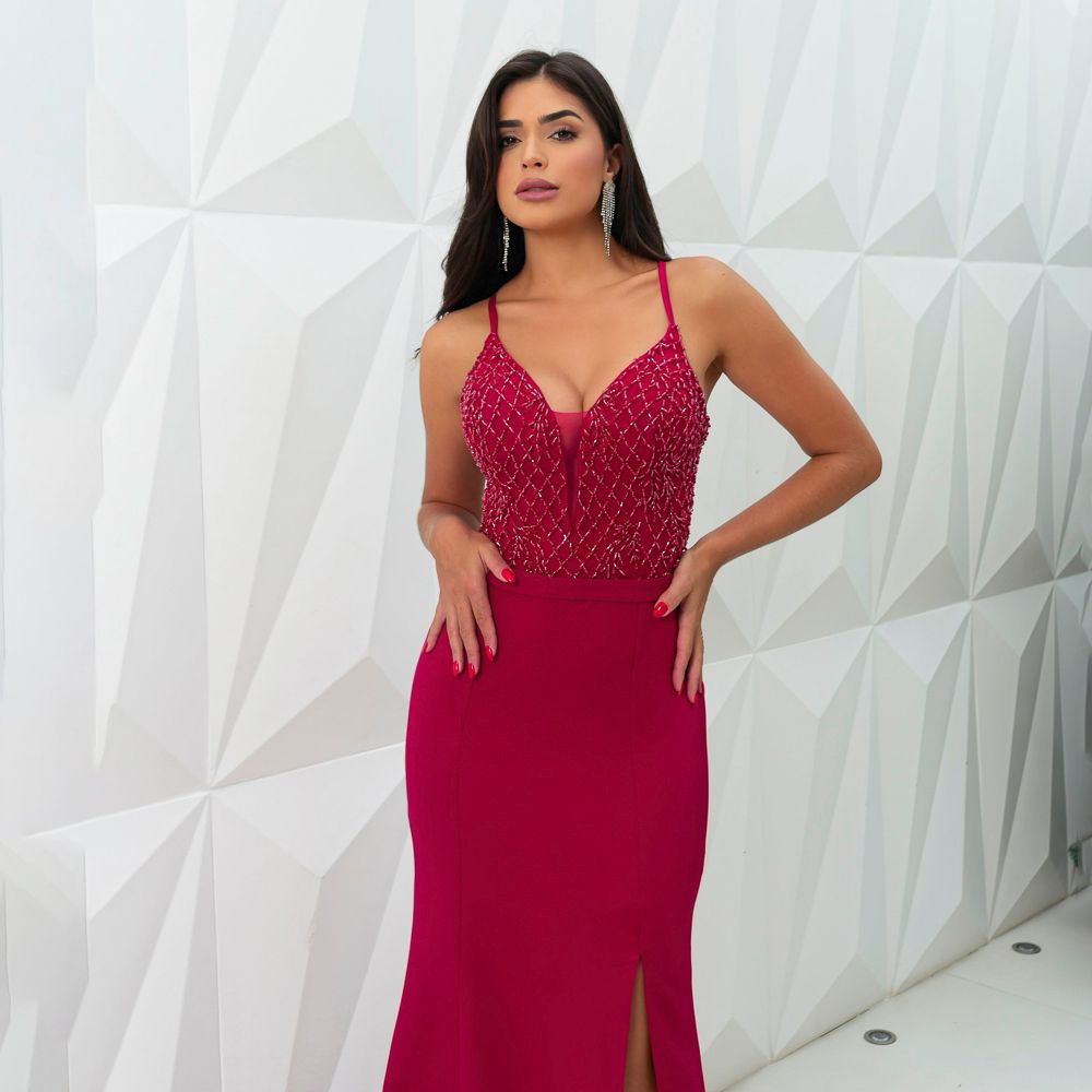 Vestido Margot Renda Busto Alfaiataria Saia Fenda – Vermelho