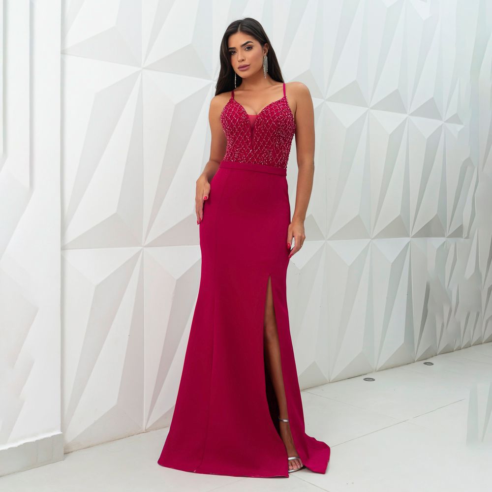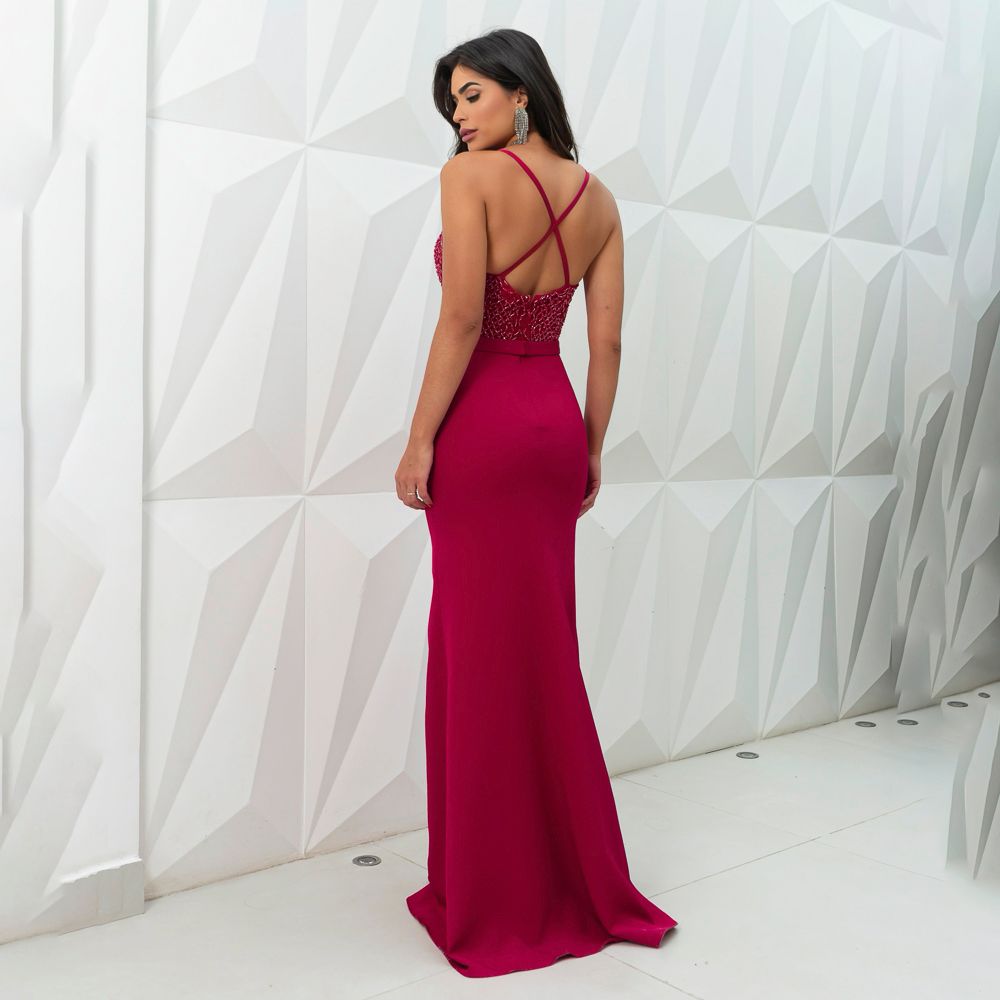 Vestido Evalina Tule Bordado Decotado Saia Sereia