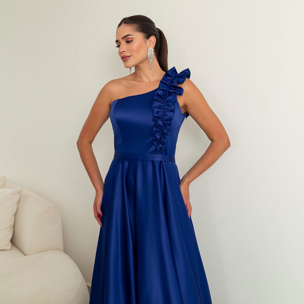 Vestido Melissa Amanda Um Ombro com Saia Rodada – Royal