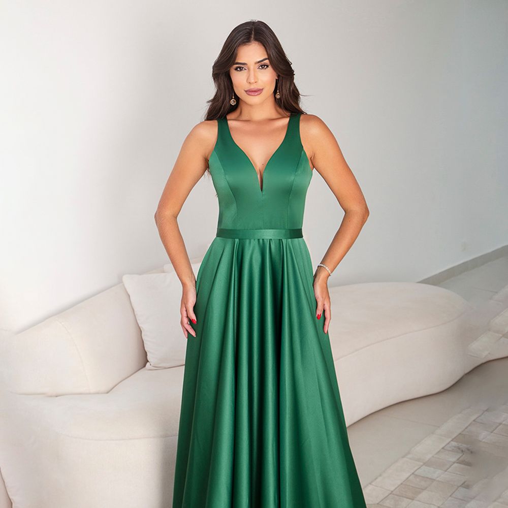 Vestido Millie Cetim Amanda Regata e Saia Rodada – Verde