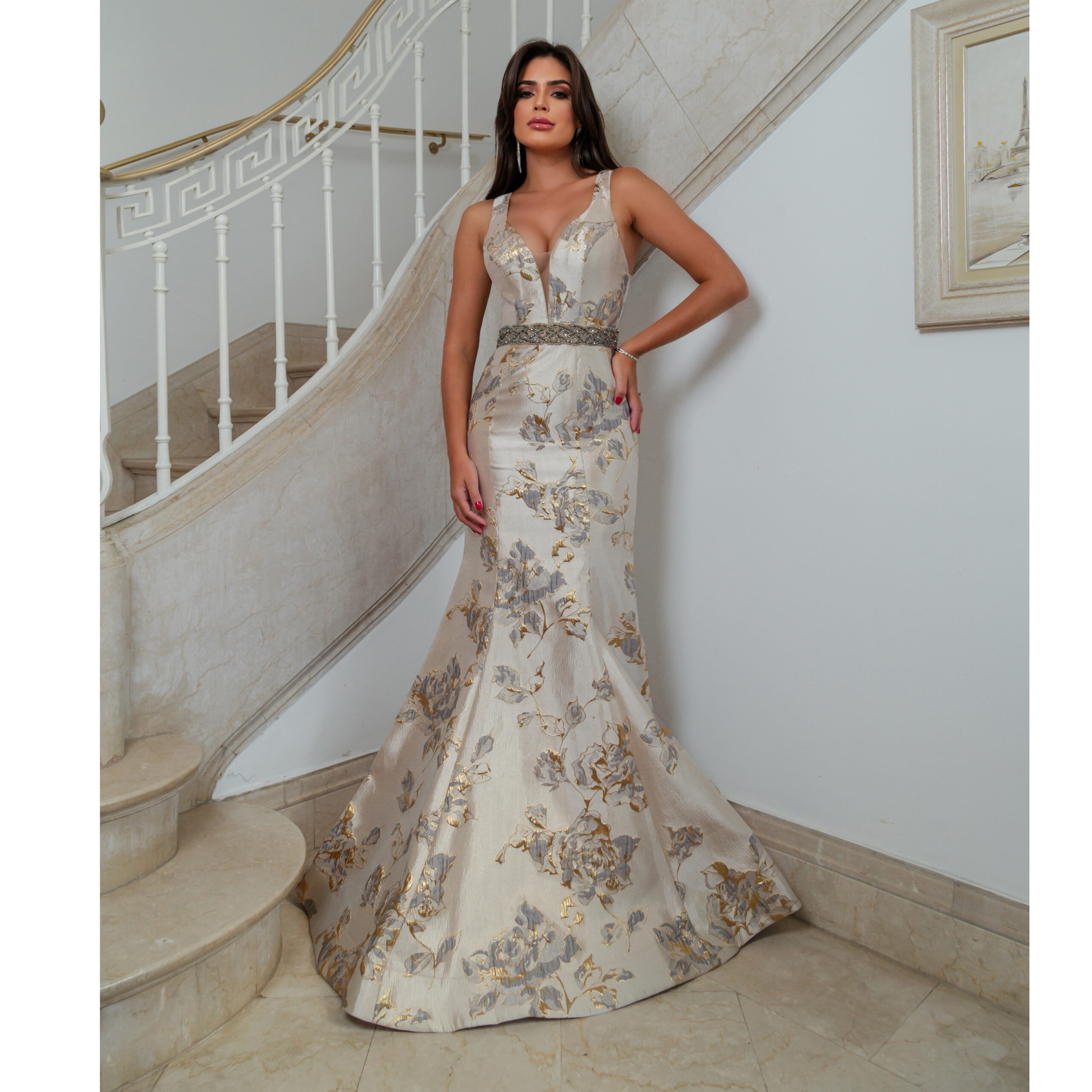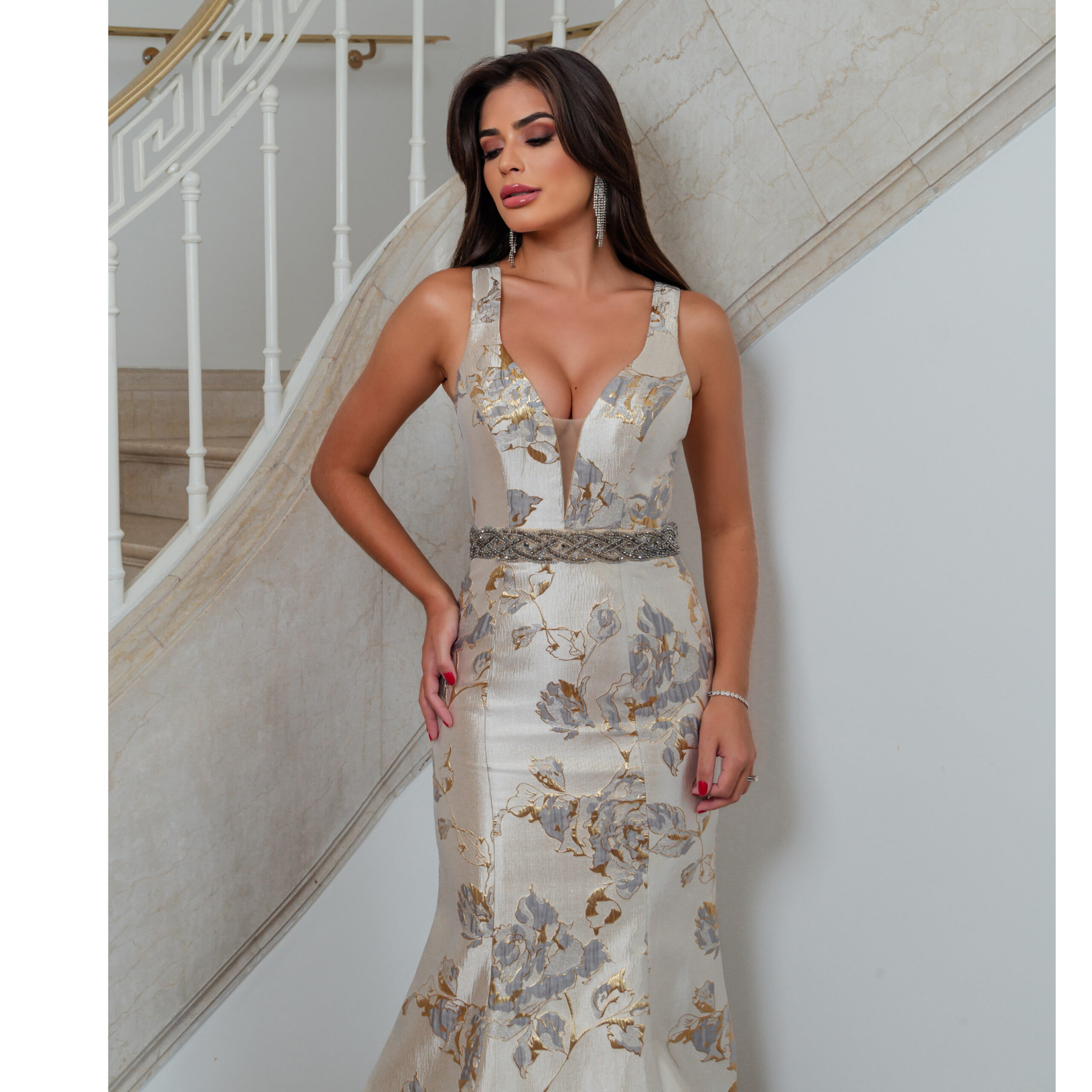 Vestido Andrea Importado, Tecido Jacquard e Saia Sereia