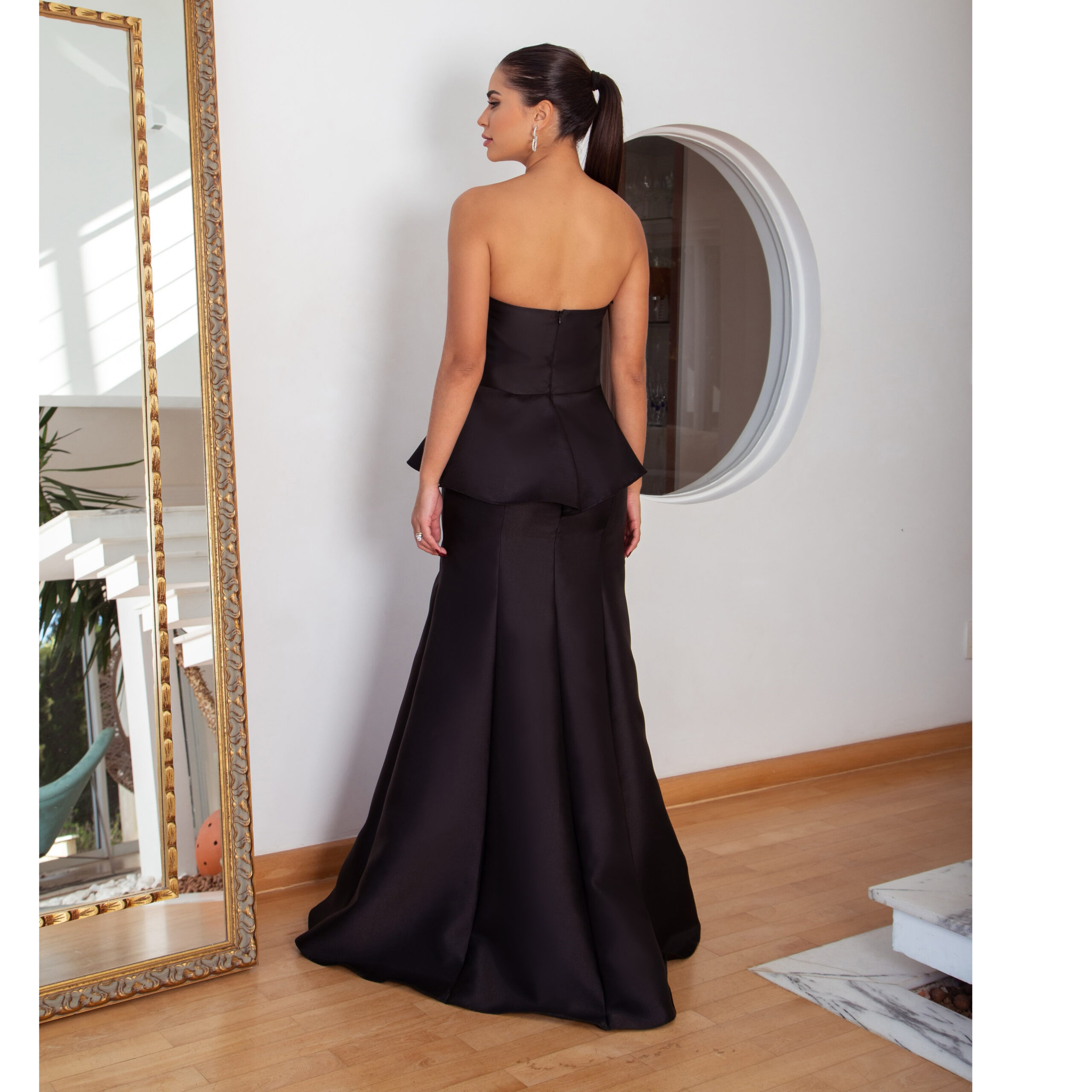 Vestido Palmer Zibeline tqc, detalhe cintura e saia sereia