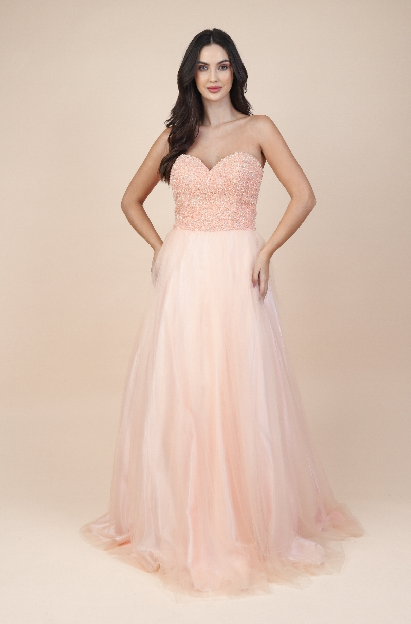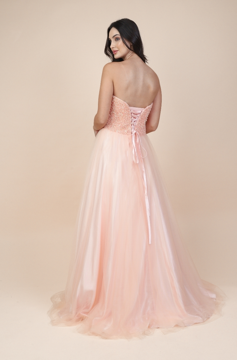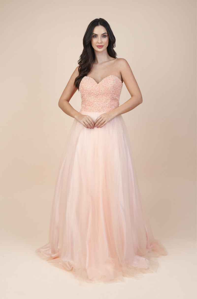 Vestido Peyton Importado Busto Bordado e Saia de Tule – Salmao