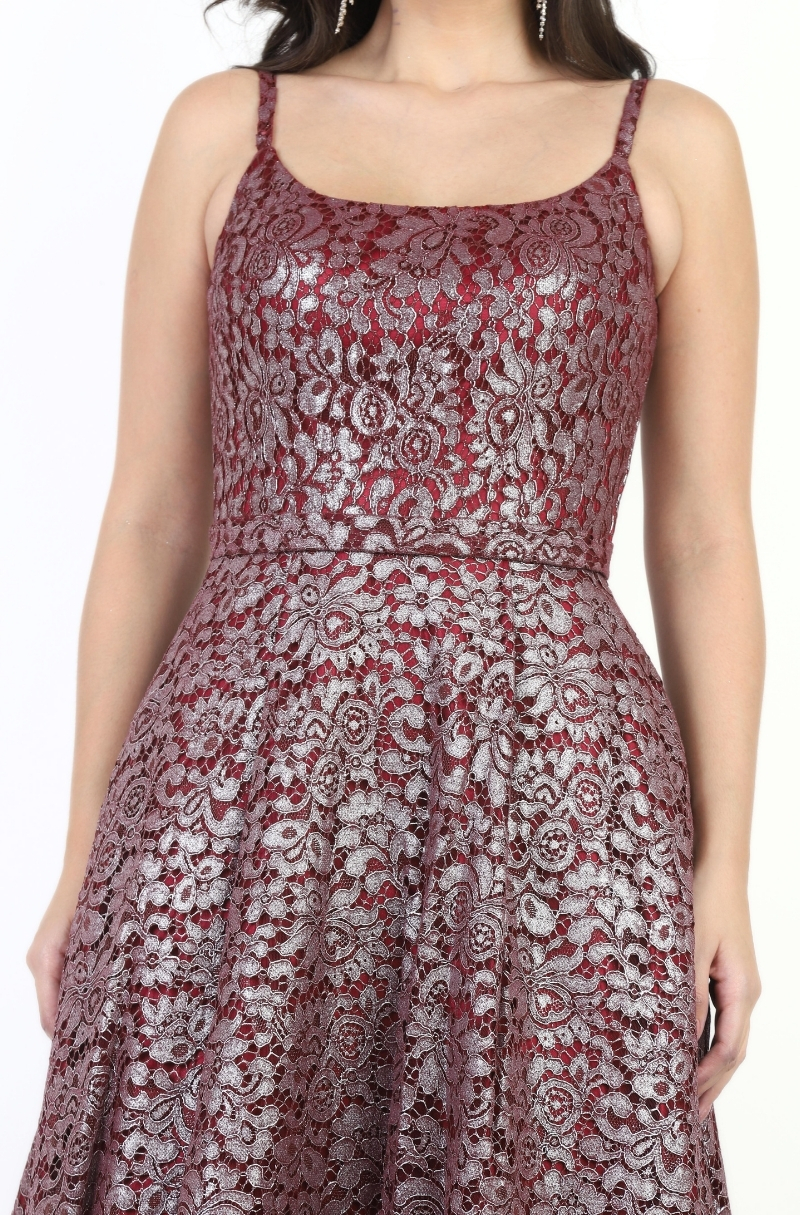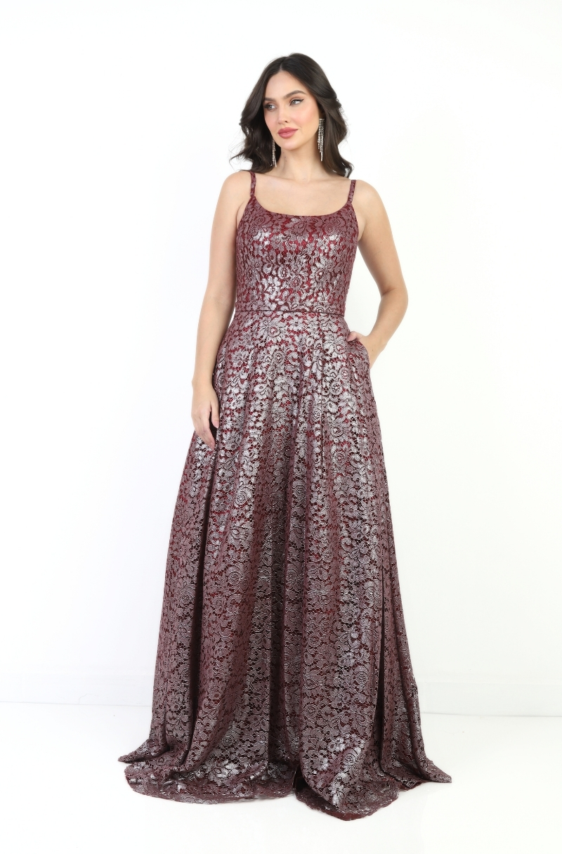 Vestido Remy Importado, Tecido Jacquard e Saia Rodada – Bordo