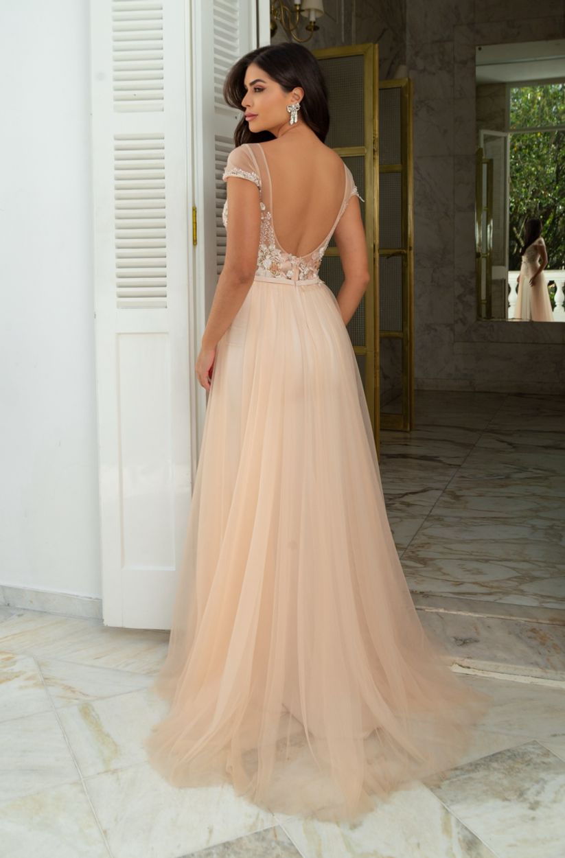 Vestido Kamila Importado Busto Bordado e Saia de Tule Rodada