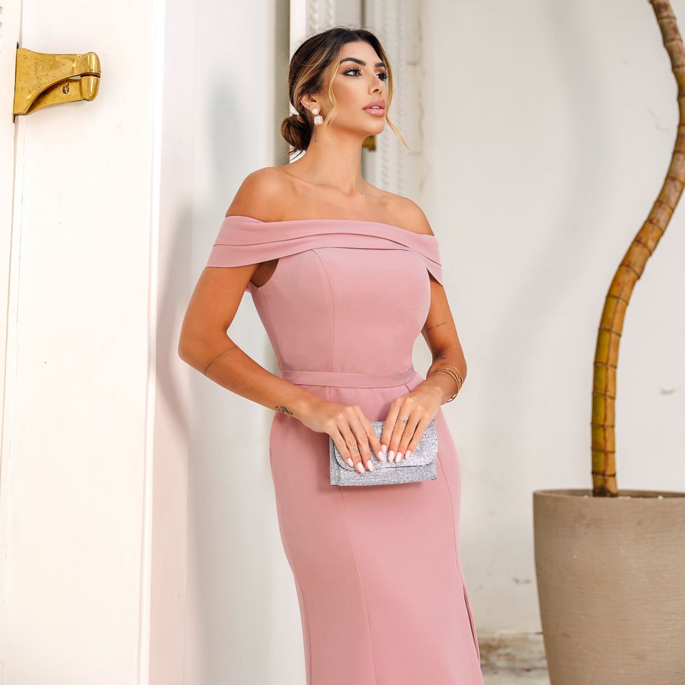 Vestido Saint Alfaiataria Pala Dupla Ombro A Ombro e Saia Fenda – Rose