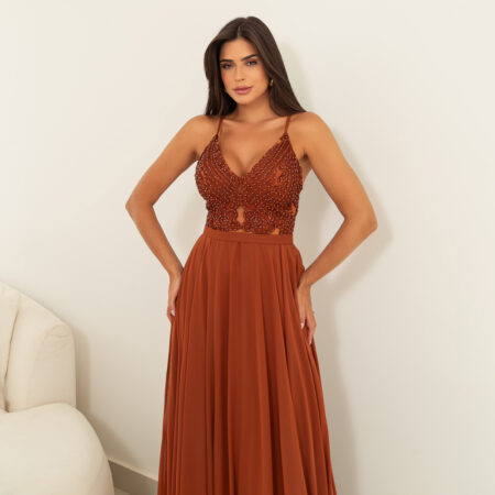 Vestido Allison Importado Busto Bordado e Saia Fenda