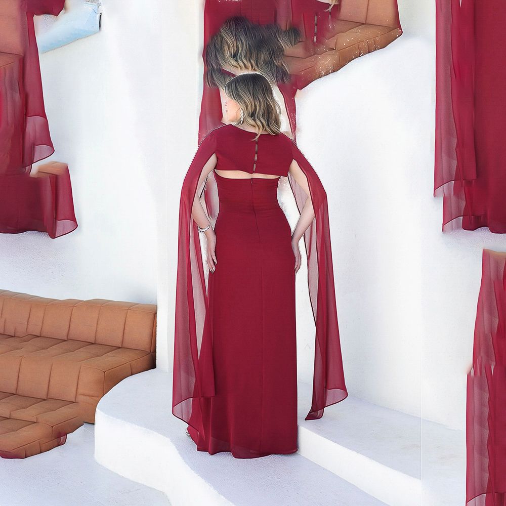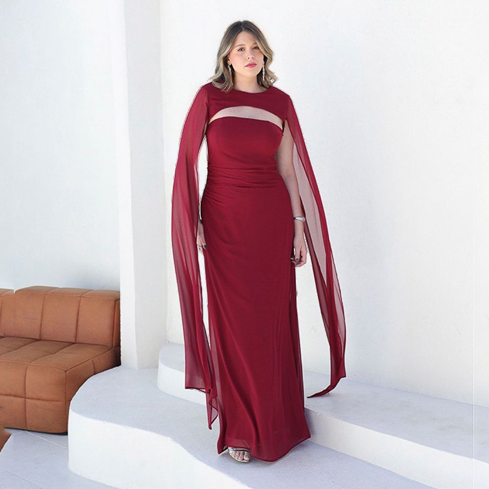 Vestido Skye Chiffon tqc com capa e saia evase
