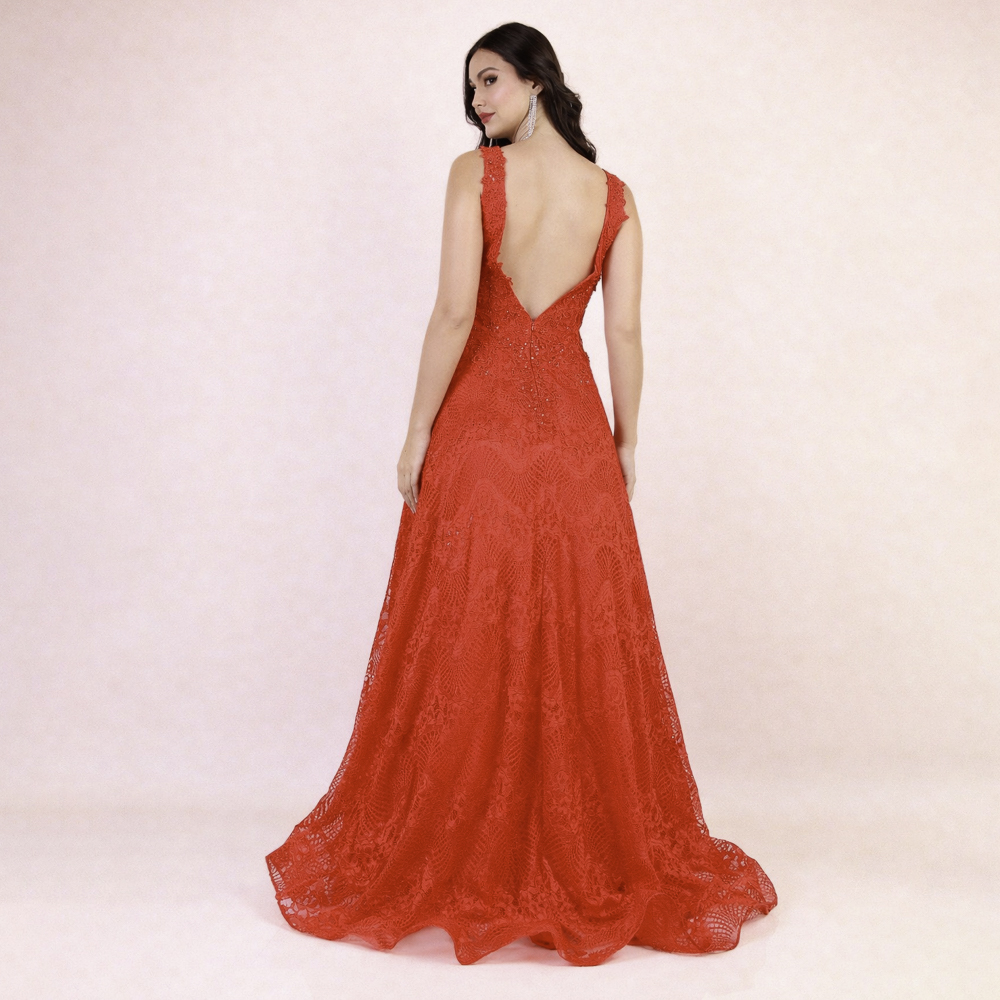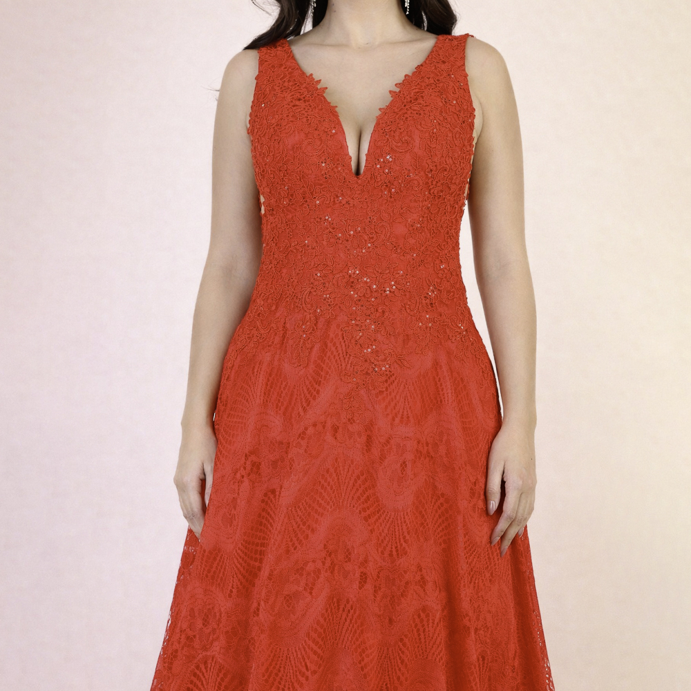 Vestido Sylvia Importado, Busto Bordado e Saia de Renda – Vermelho