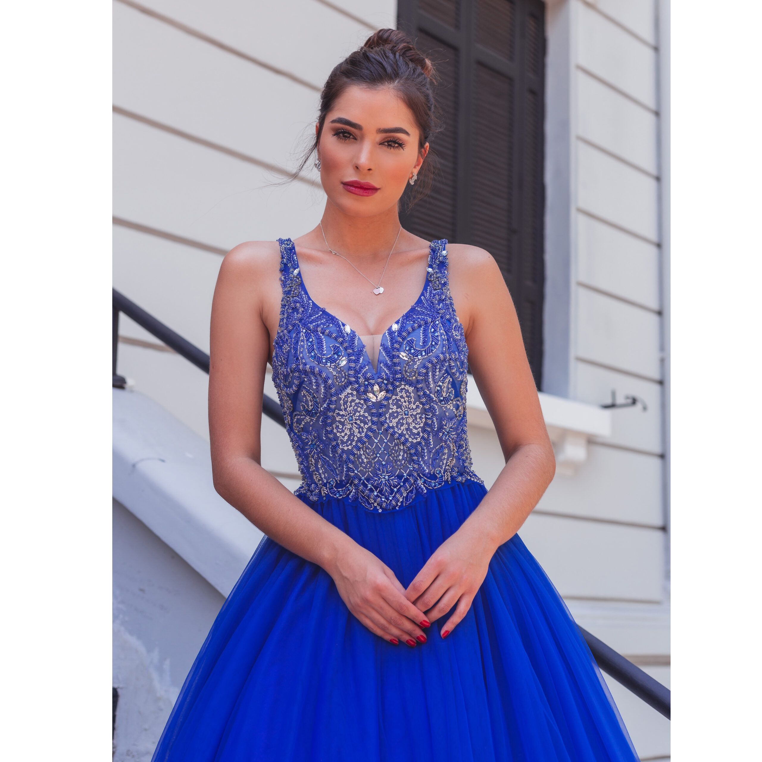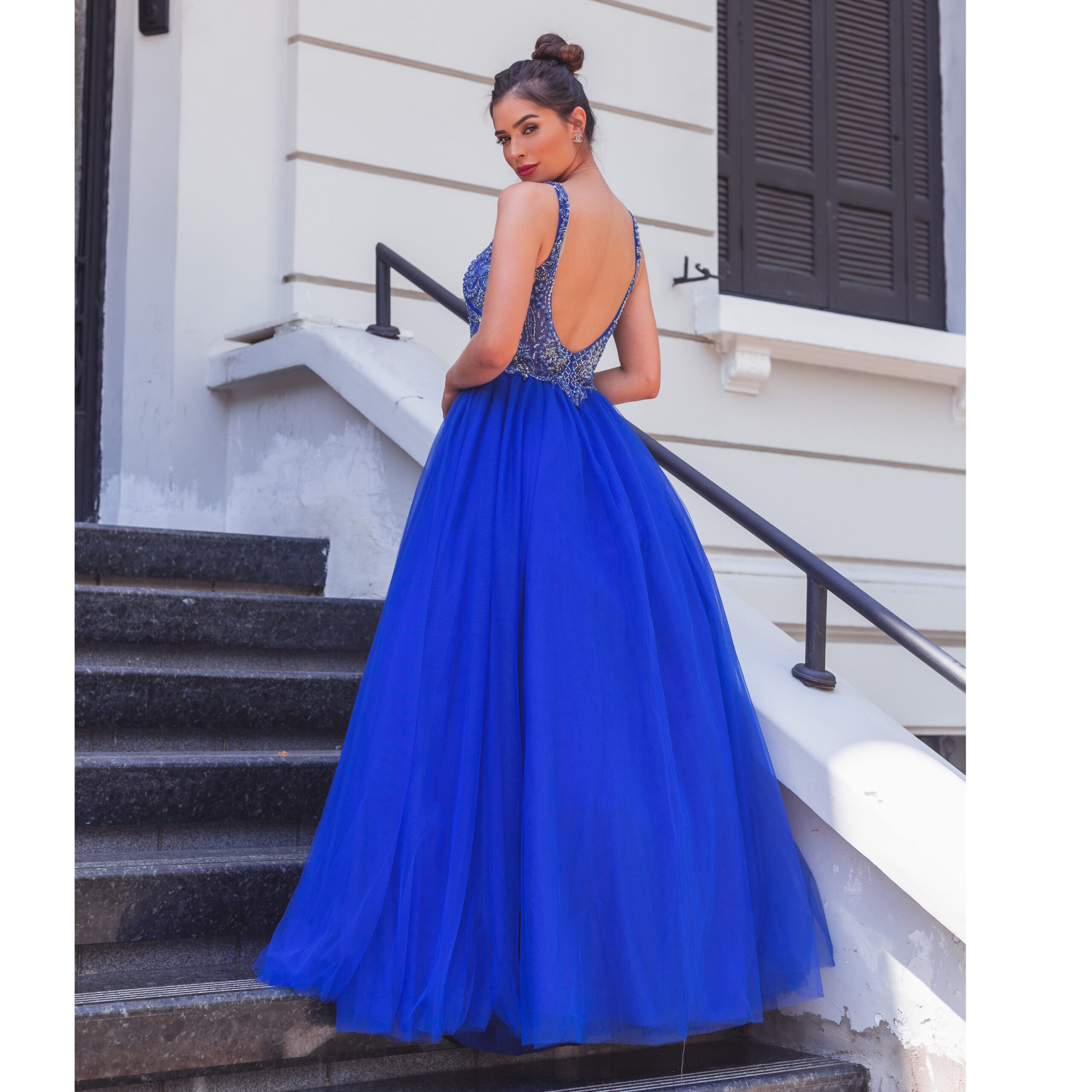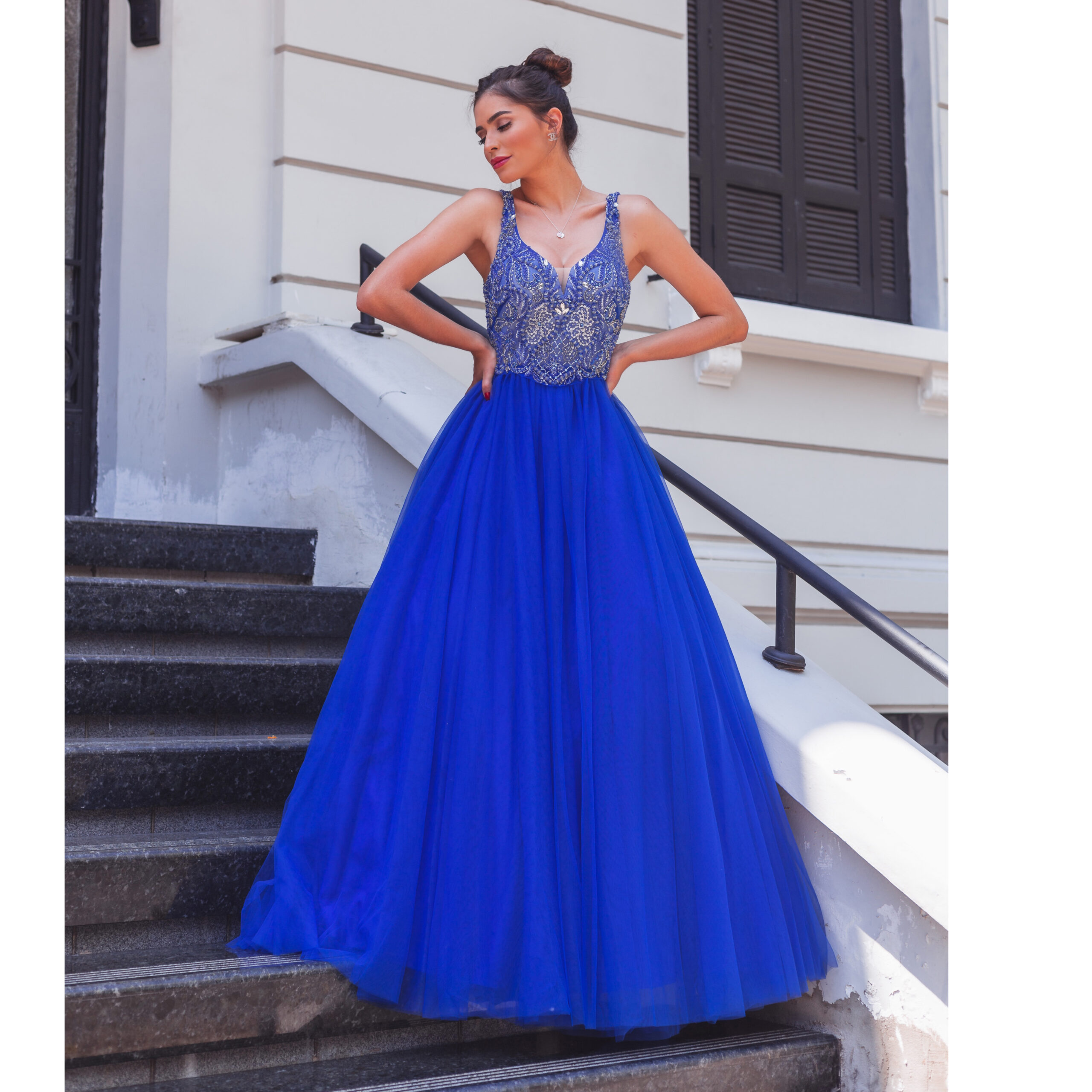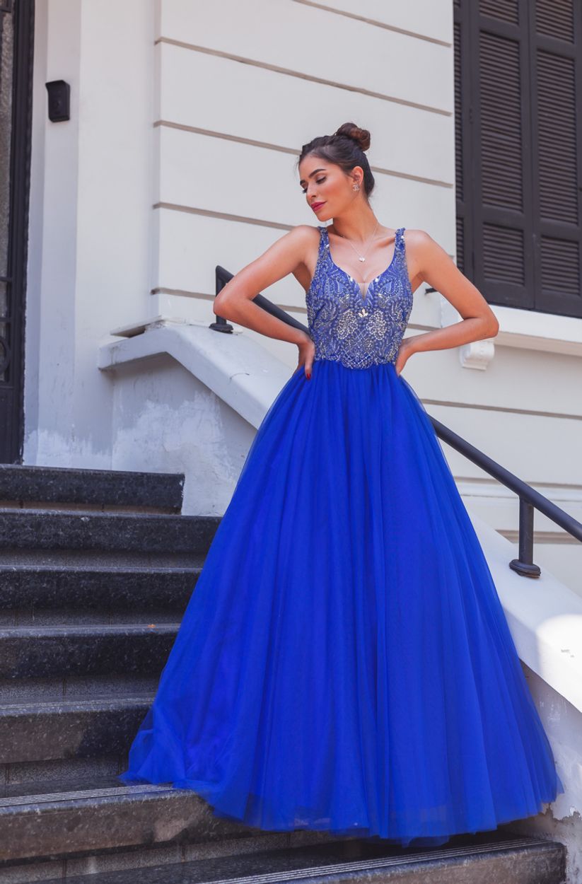 Vestido Valentina Importado Bordado e Saia de Tule Franzida – Royal
