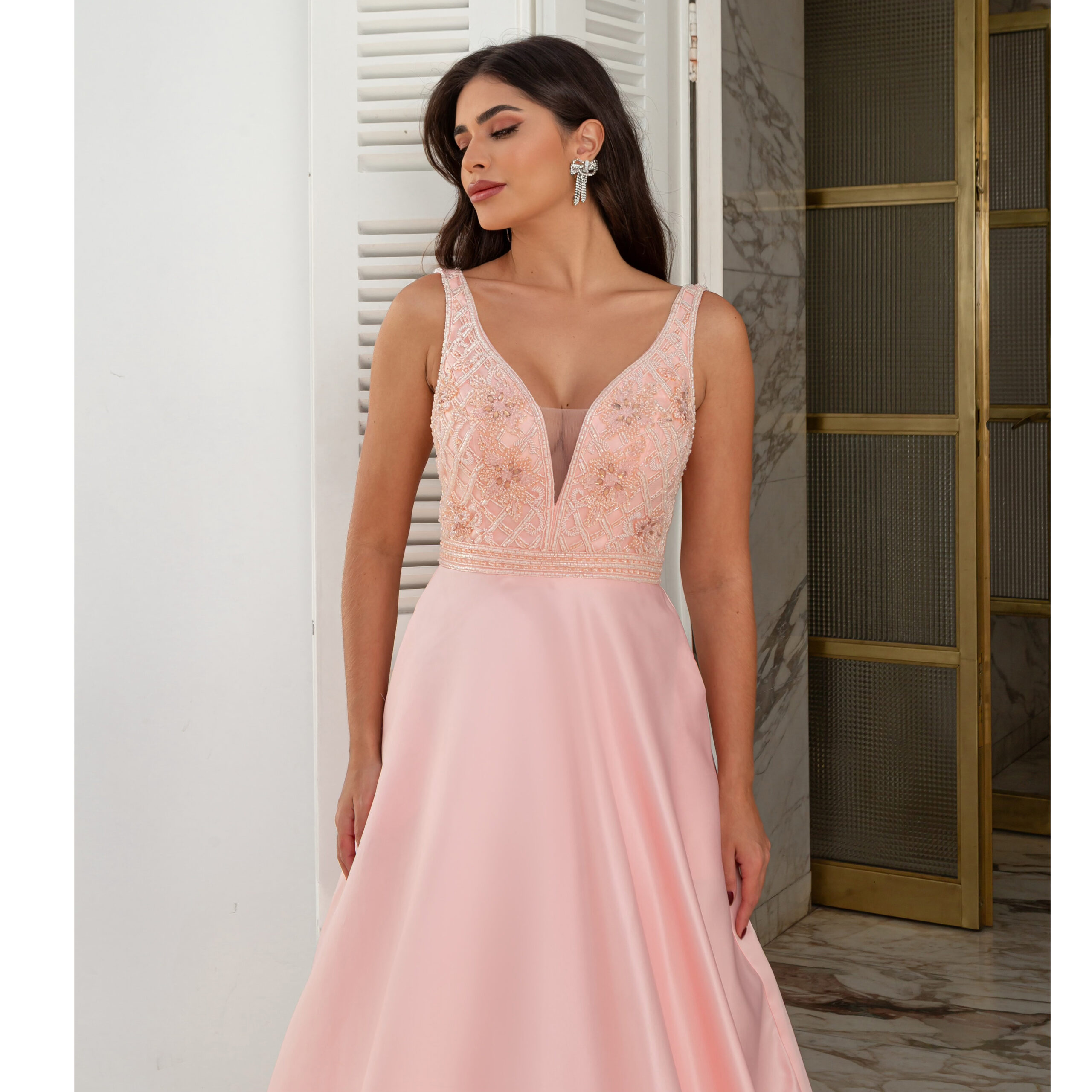 Vestido Allison Importado Busto Bordado e Saia Fenda