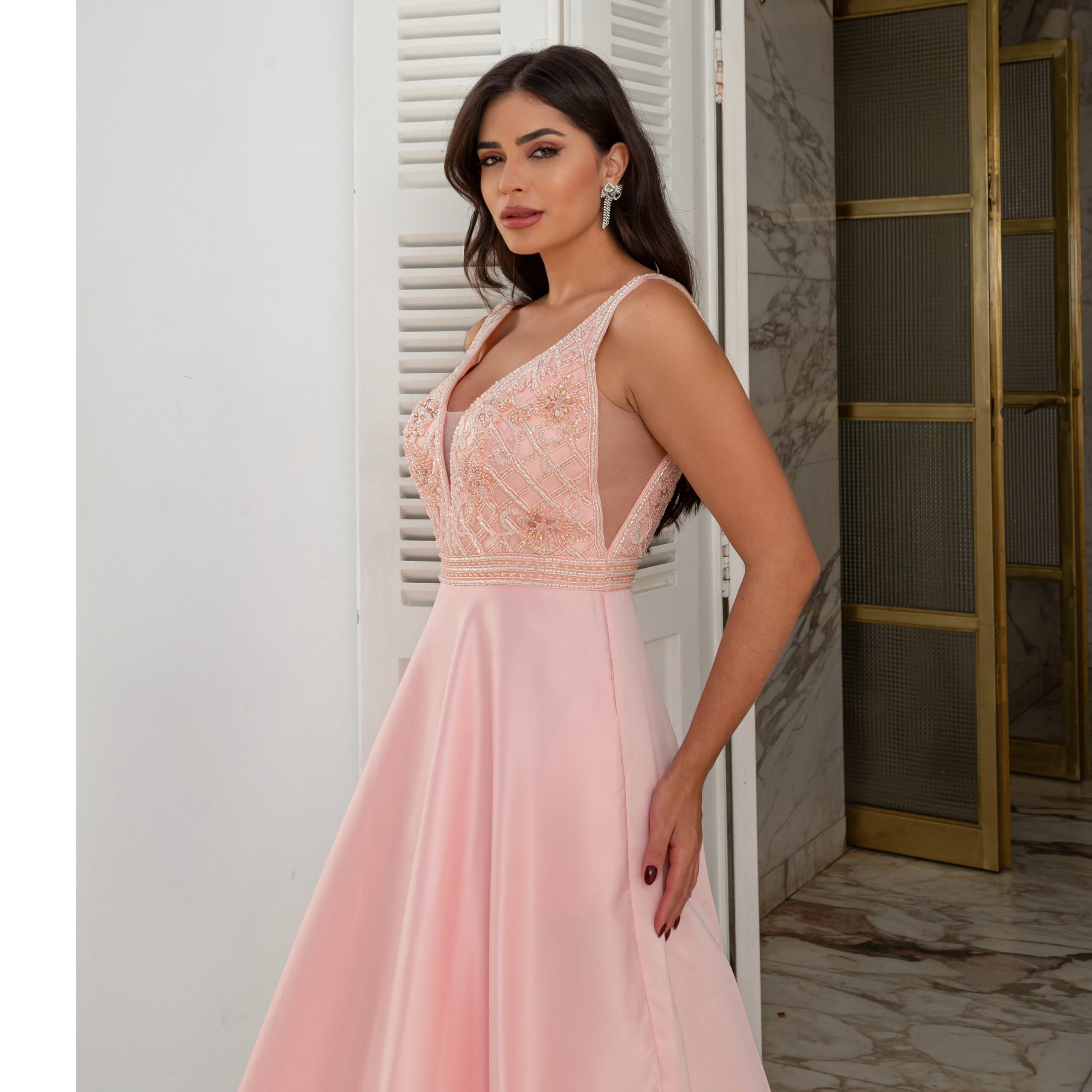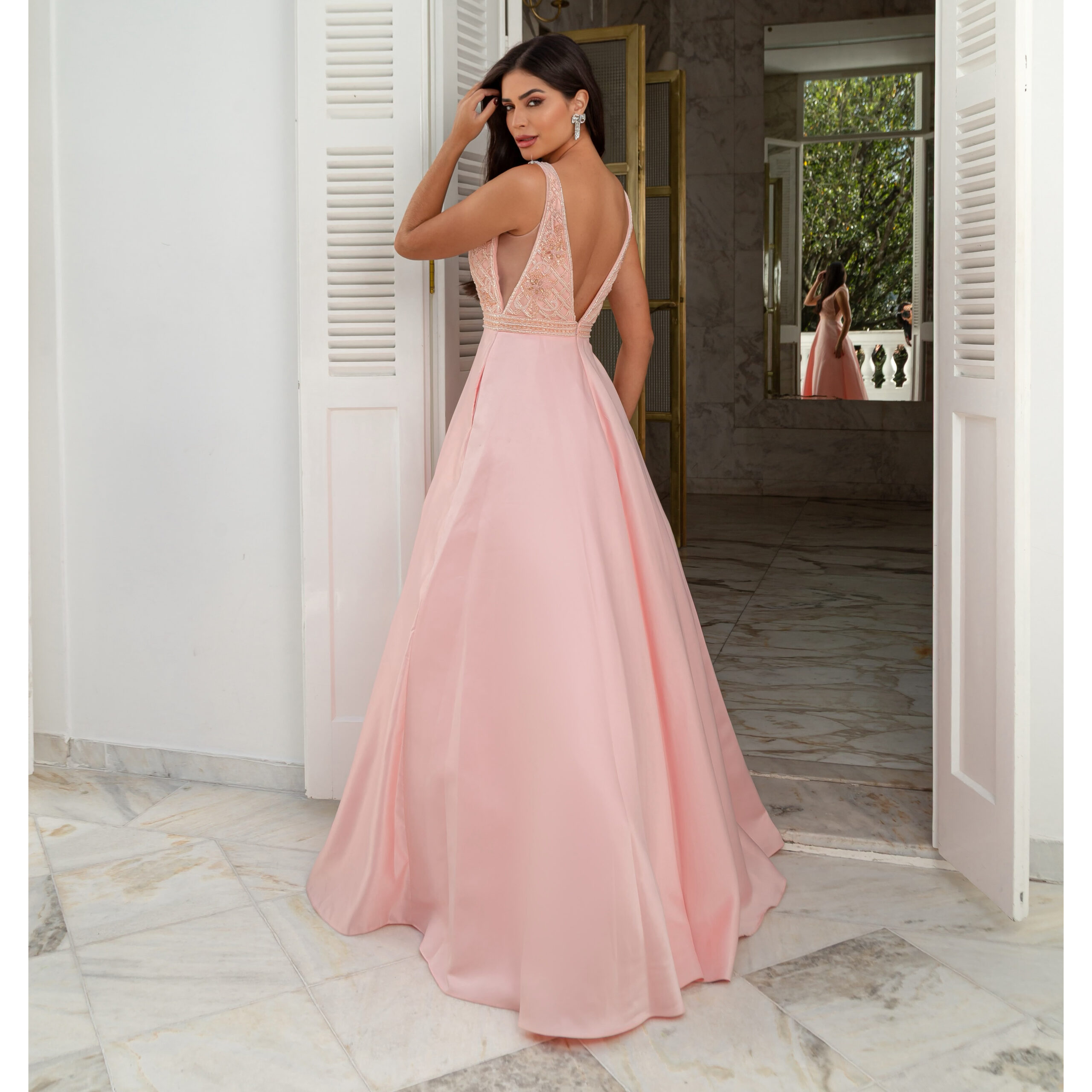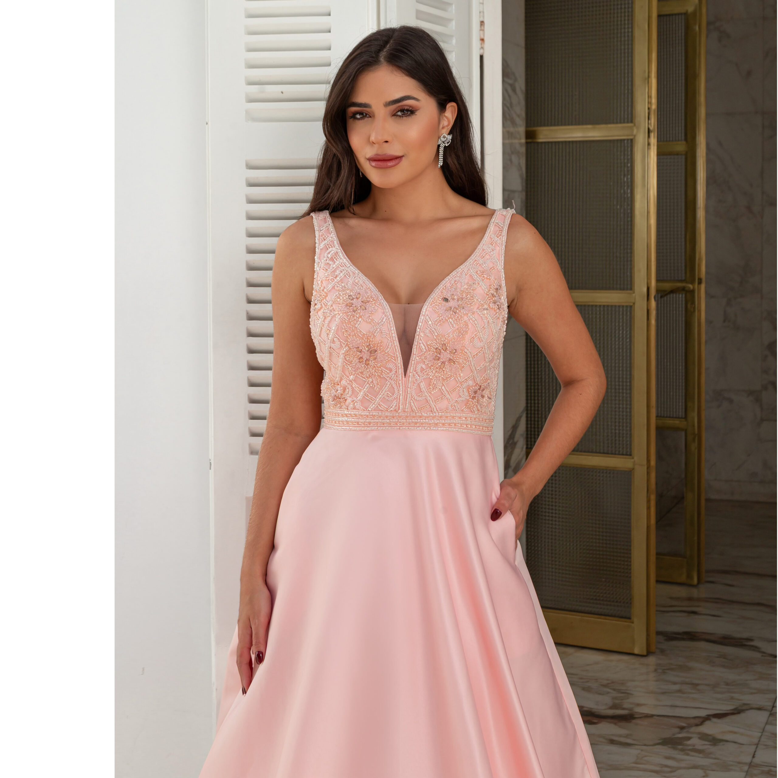 Vestido Zuri Importado, Busto Bordado e Saia Rodada – Rosa