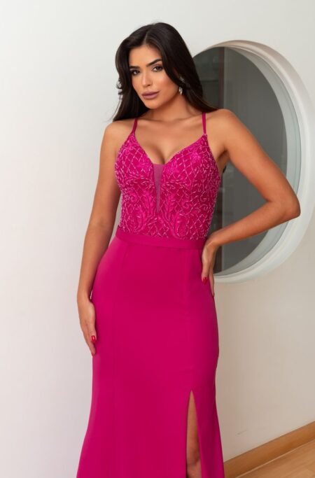 R$ 1.698,00O preço original era: R$ 1.698,00.R$ 1.358,40O preço atual é: R$ 1.358,40.Vestido Mariah Alfaiataria Busto Bordado Renda e Saia Fenda